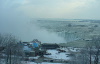 Since my Mother-in-law is too ill this year to qualify for health insurance to travel in the US, we decided to meet in Niagara Falls for our Christmas Celebrations. It was farther for our American relatives to drive but it worked out okay. Here are the views from our breakfast table...the photo on the left is the American Falls and on the right is the Horseshoe Falls.