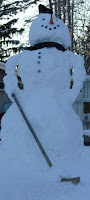 It has been a beautiful winter wonderland here, with overnight temps of minus 20. My dog is refusing to go for walks in this cold weather, so yesterday I went for a nice walk by myself and took a few photos of the snowmen made by the nieghbourhood children.