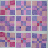 On my design wall today are some of the blocks for a developing group quilt - you can read about the beginning of the quilt here. Some of these blocks need to be unsewn and rematched with other fabrics. You can probably pick them out - there are a couple of blocks where the fabrics both read as dark. We still need to sew about twice as many blocks, but the quilt is coming along and we are hoping to get it sewn together in the next 2 weeks.