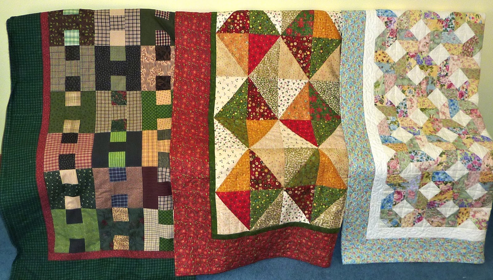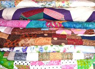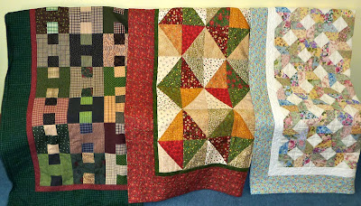 I spent way too much time tonight making this photo collage of some of the quilts I worked on this year. Picasa is definately not a "user friendly" program! However I was successful in finally producing this photo summary.I hope that 2011 will bring some great new quilt projects, but mostly I hope to finish lots of golden oldie quilt projects. I plan to organize my fabric and especially my scrap bins, and hope to make a significant dent in the pile! To that end, I have joined 2 groups...Judy's UFO challenge (see my list here) and Angela's rainbow scrap challenge. The first colour of scraps we'll tackle is blue, so I'll be digging around in the blue scraps this week. Blue is a colour I haven't used as much in the past couple of years, and thinking about blue reminded me of one of my very old UFO's which is blue...I'll see if I can dig that one out.
