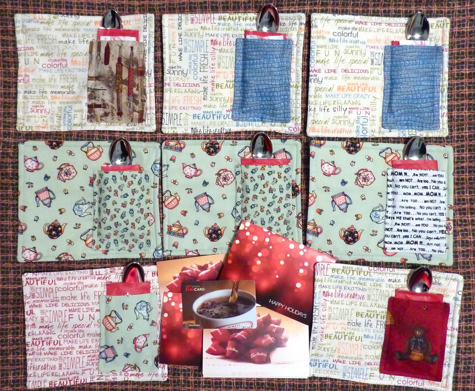 I was able to do some sewing this afternoon and will post sometime over the weekend what I have been working on. My sister came by to sew for a bit, and I got her to pull the winner's name for this little Christmas package from me. Drum roll please....there were 24 names, and the winner is... Candace!
