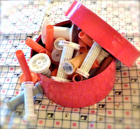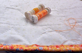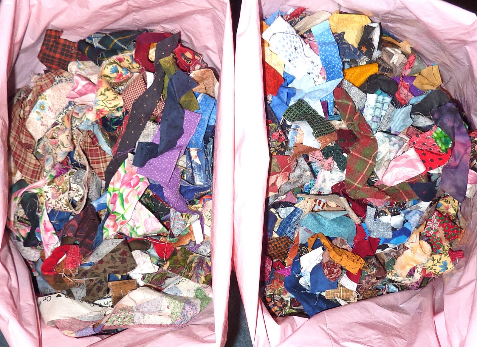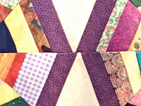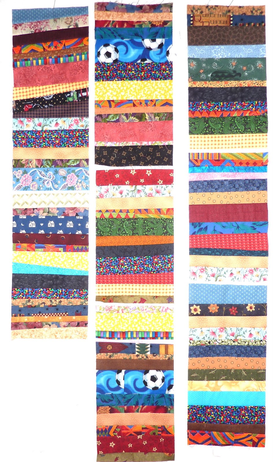 The strings are coming from these scrap bags that my friend Sandy passed on to me. It's a different feeling (no nostalgia!) to sew scraps that I "don't know" but I am thankful to have them for this border.