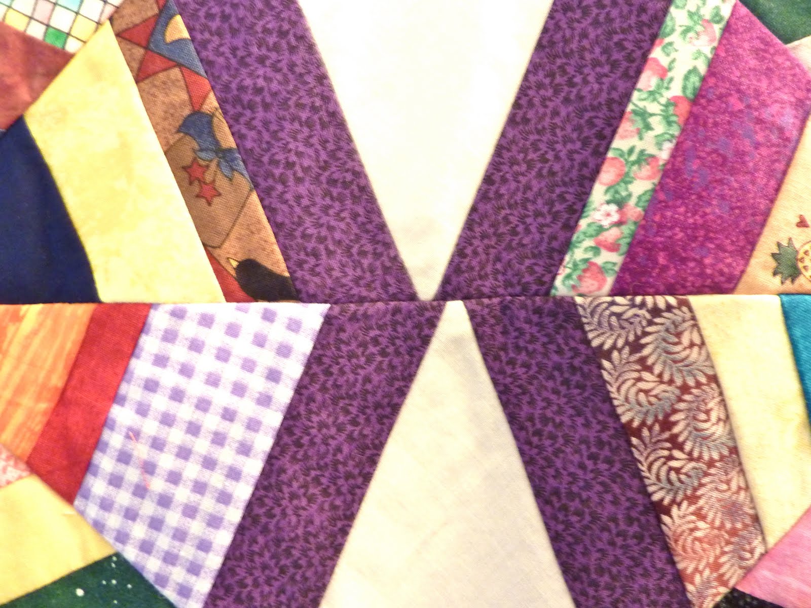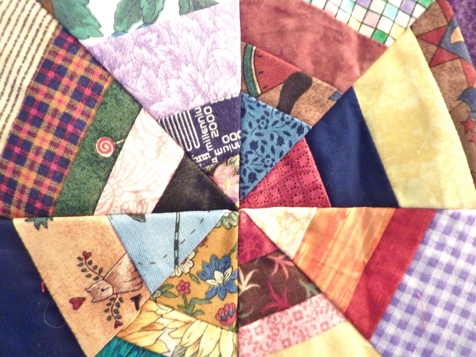 It's this scrappy spiderweb quilt that I started sewing many years ago. It has been in hiding for so long that there isn't a photo of it or any mention of it on my blog. I tried to remember when I started it...I know my kids were very young. But I see some millenium fabric in the blocks, so maybe it was around 1998/1999.