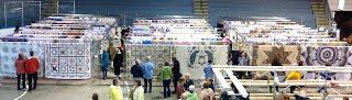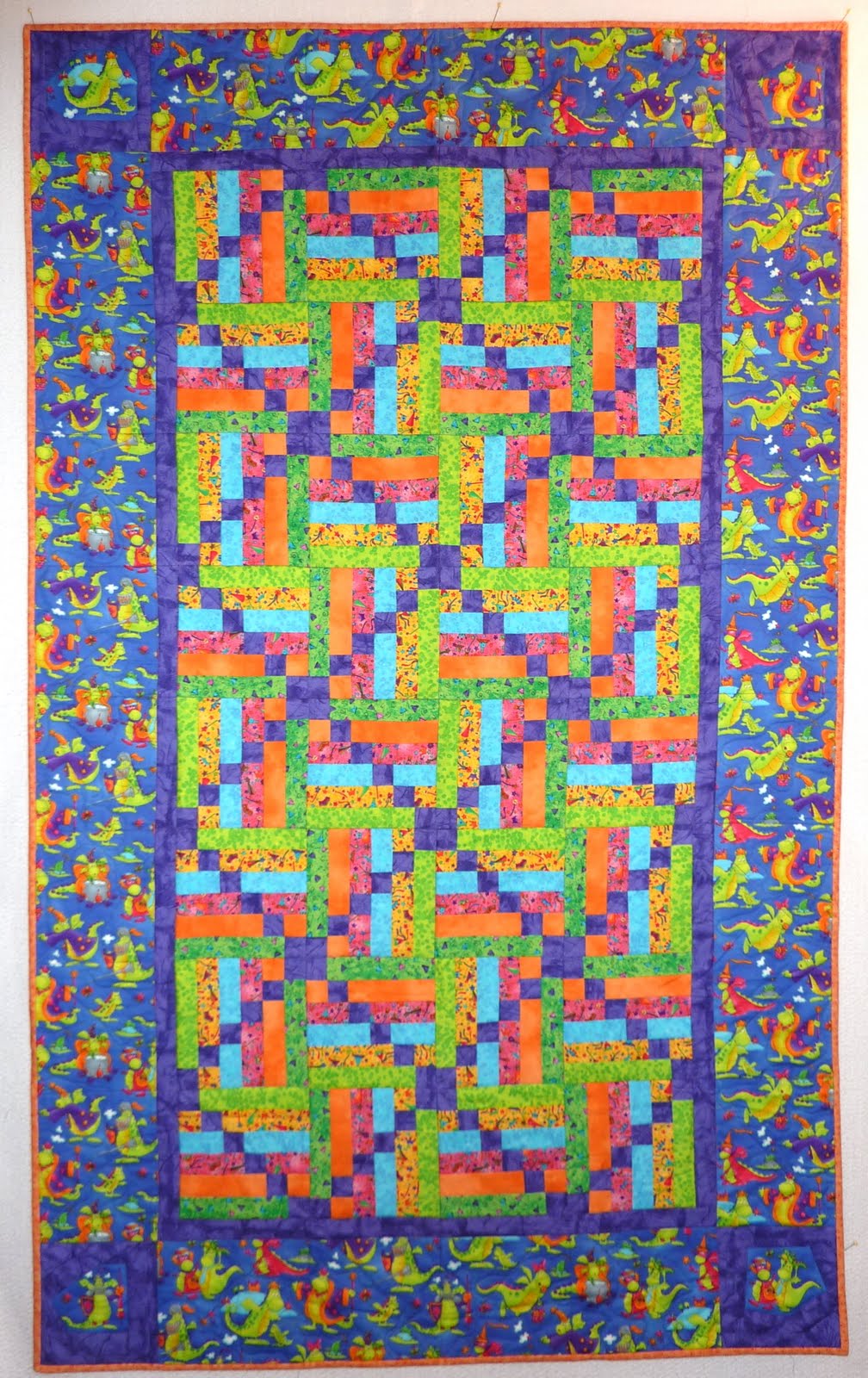 This is how far I was as of yesterday. That is not even enough for 3 sides of the quilt! I think I might take out the soccer ball strips cause they really stand out.