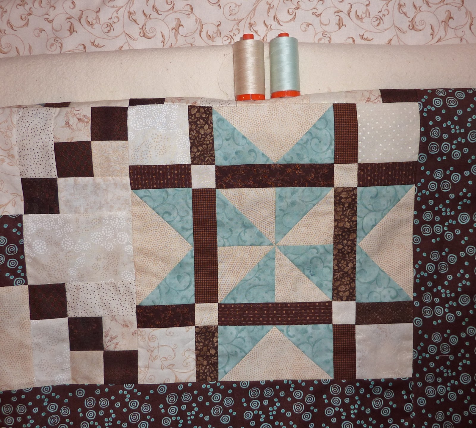 I have the backing, batting and thread and can't wait to get started. I hope to get the quilt pin basted and the quilting started this weekend... wish me luck!