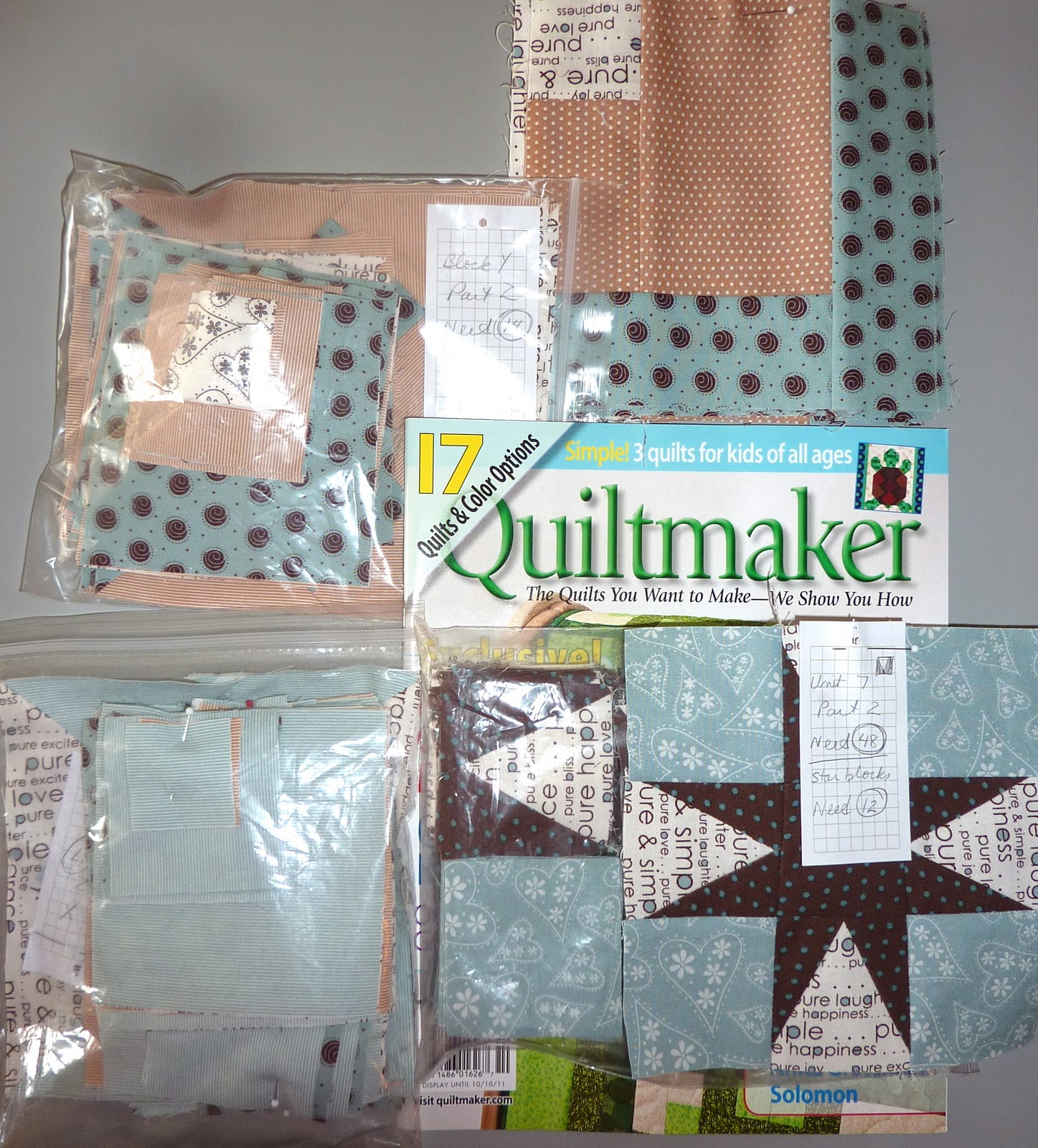 I think I will just keep making blocks, and putting them in the block baggie, and keep enjoying the journey as long as possible!