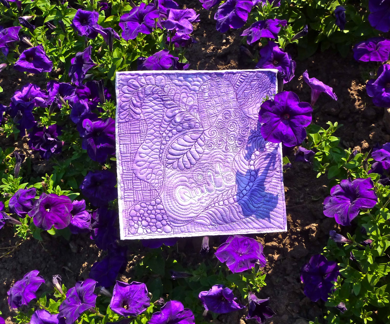 I enjoyed painting some purple fabric to quilt for this month's FMQC and put it as my blog header photo.
