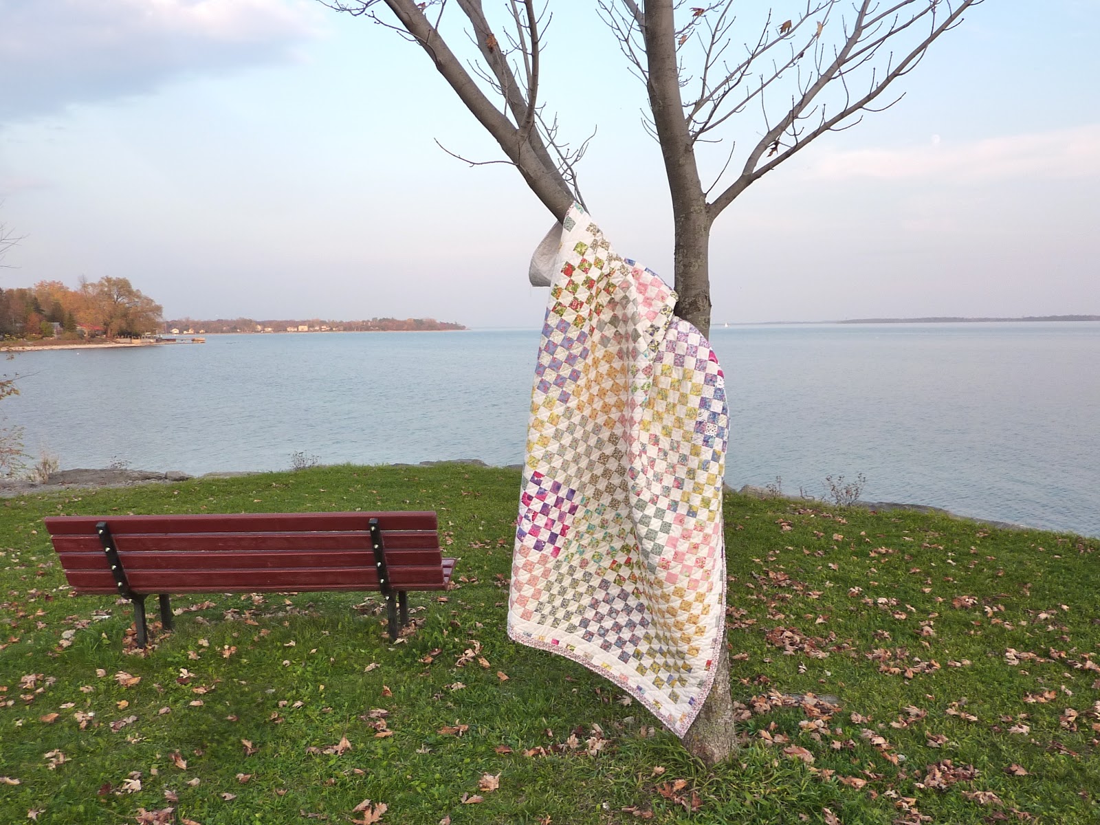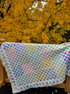 In my first weekend quilt retreat I learned how to make baby (or "bonus") half square triangles from the flying geese units in this quilt that I posted yesterday.