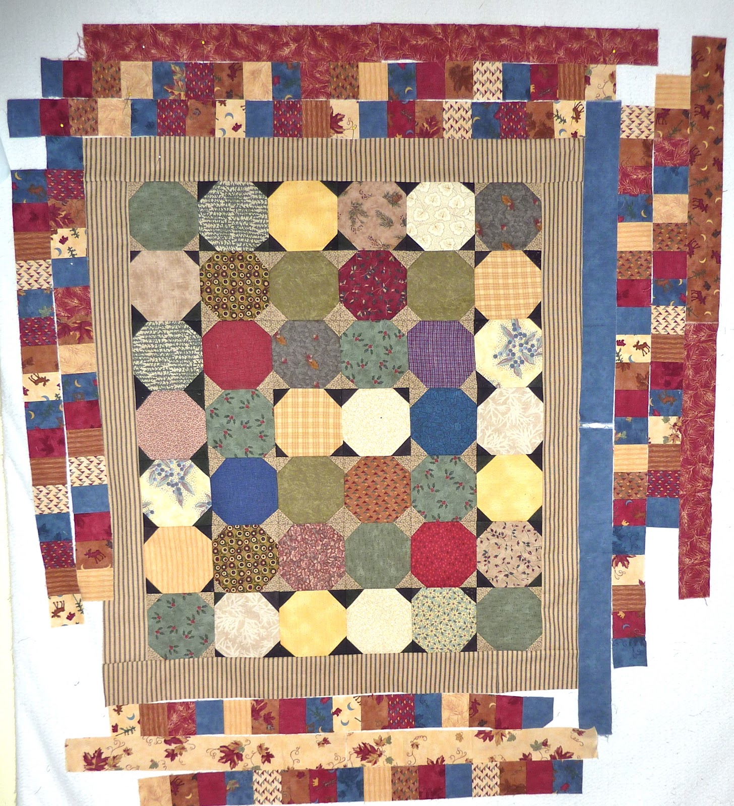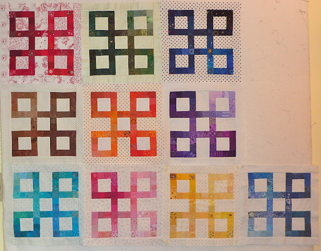 Here is November's lesson with Sarah Vedeler which I finished on the last day of November! It is one of my all time favorite quilting designs - spirals! I used this design on my Dr. Seuss quilt, Disappearing 4 Patch, and the Kwik Scrappy Star quilt...to name a few.