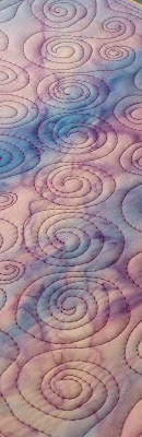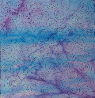 The hardest part of this lesson was to quilt the spirals in a straight line. On paper, the lines helped me to keep the swirls in a row.