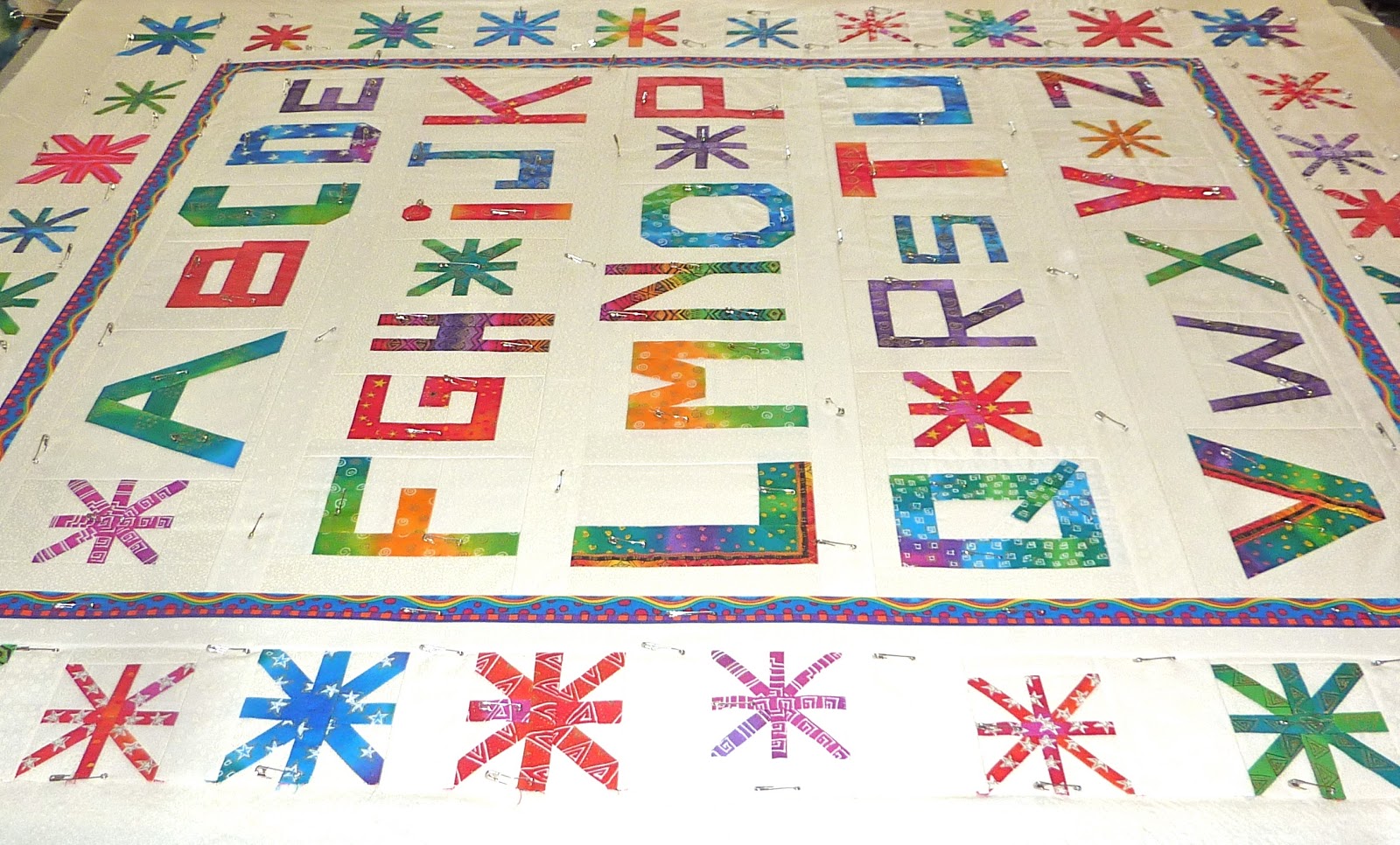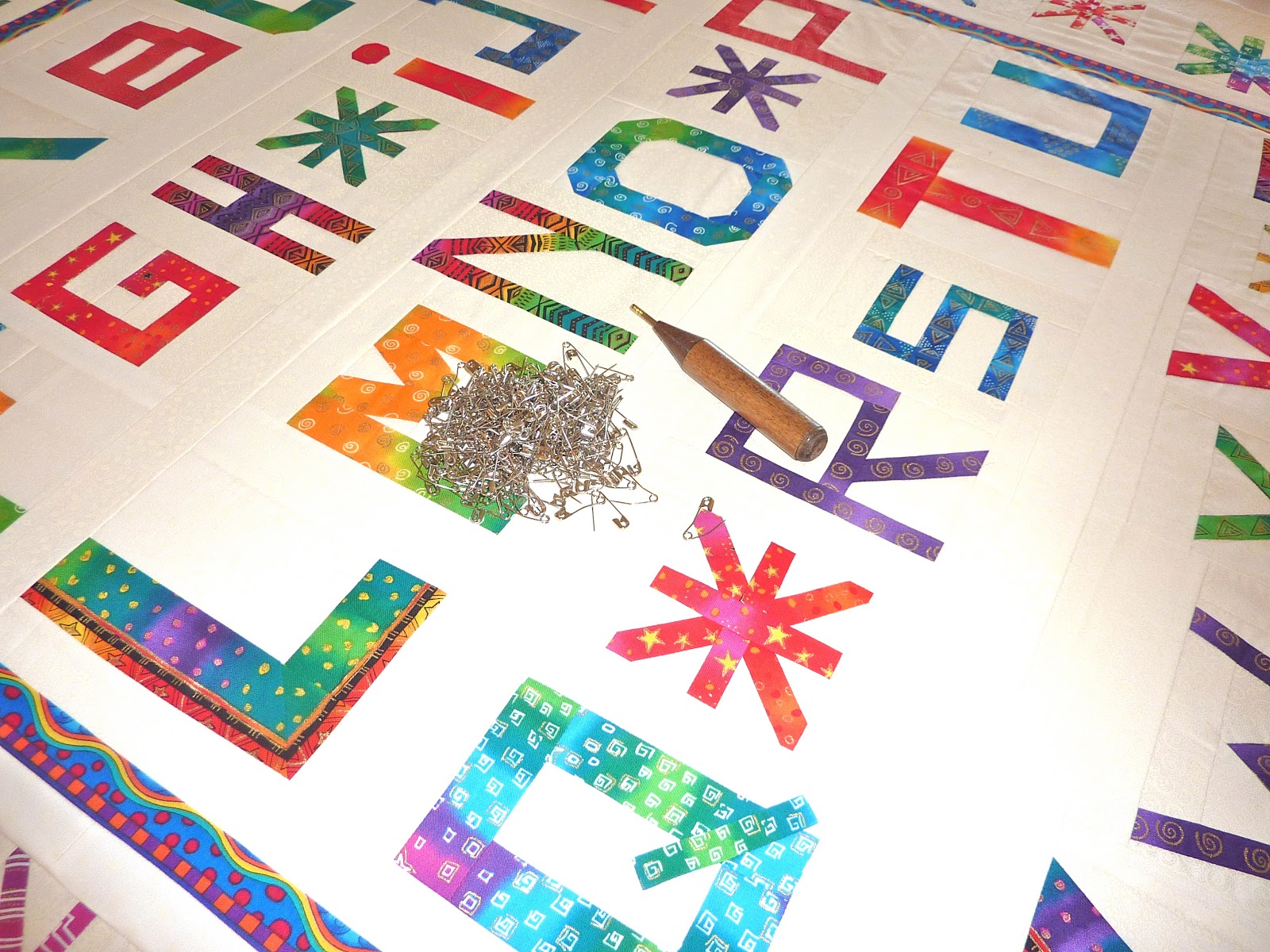 It took a while to settle on a machine quilting design to go around all the letters, but I decided on a swirly pattern.
