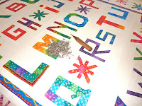 This quilt was started at the Red Letter Quilt Along almost 2 years ago. The letters were made using Tonya's book called Word Play Quilts (a great reference book that every quilter should have in their library IMHO). The 37 asterisk blocks were inspired by Jean's quilt, and I used a tutorial at the Selvage Blog to learn how to sew them. They were really fun to sew and I think I will probably be making more of them in my quilting future.