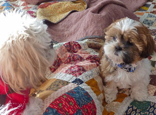 However, our crusty old Molly dog is not sure what to make of this young whippersnapper. She is not at all amused by his antics, and tolerates him at best. I spend a lot of time mediating! I know Molly will get used to having a young 'un around... it just takes old dogs a while to adjust to change.