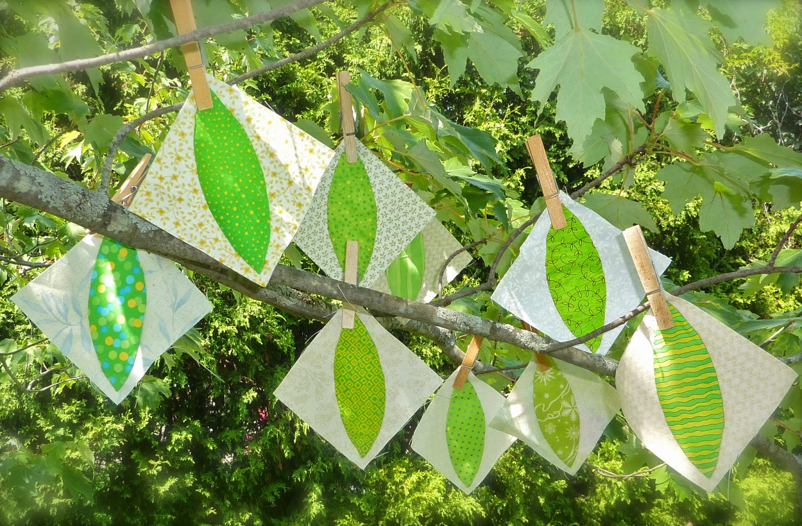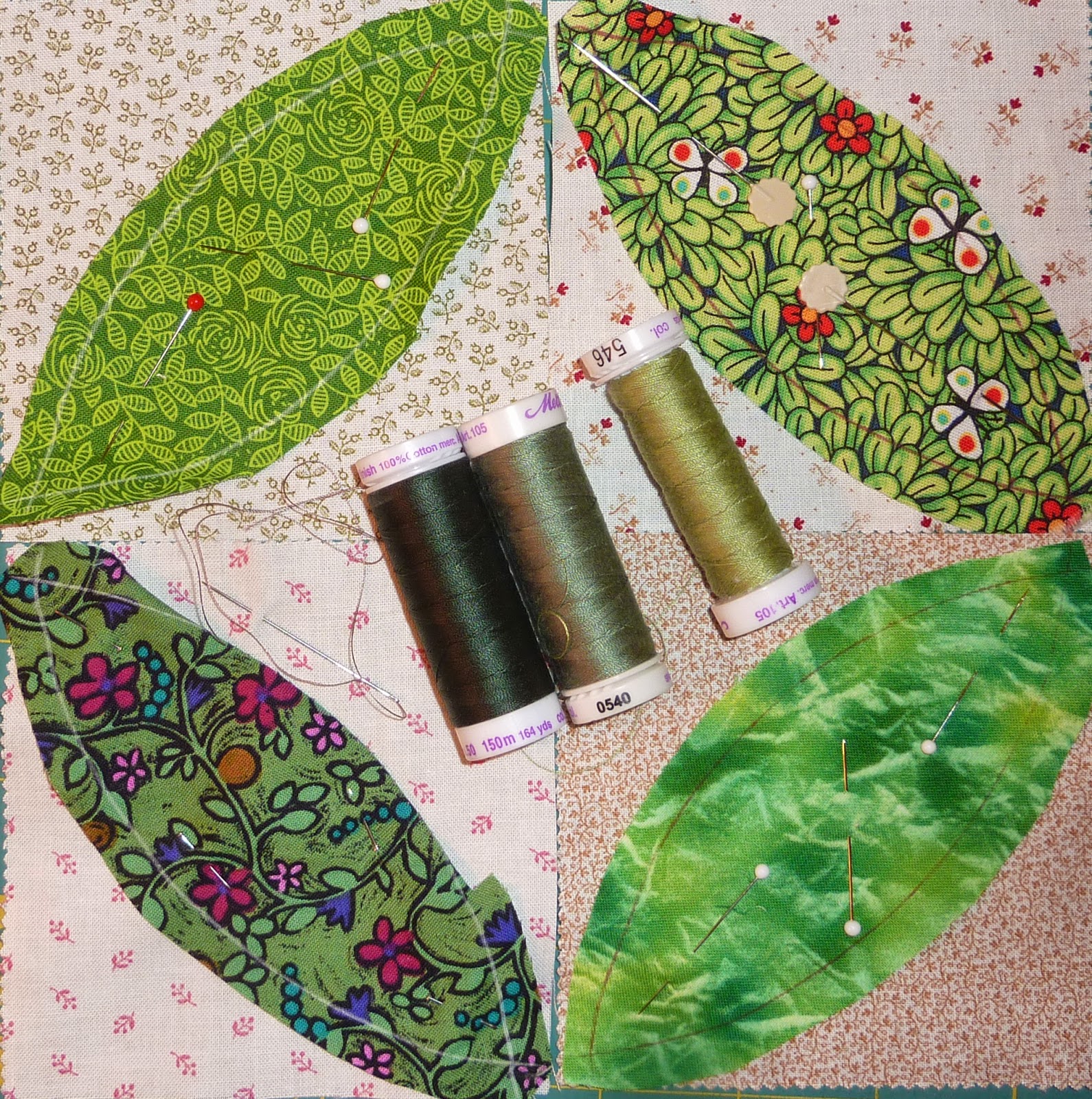 I will be continuing to practice applique stitches on my green pumpkin seed blocks.