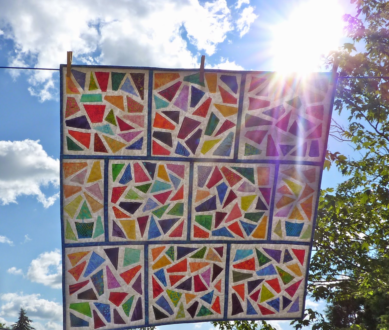 The first pile of scraps I loved was all the cut off bits from sewing the paper pieced arc blocks. I turned those scraps into a quilt called "Shattered" which I finished in 2013.