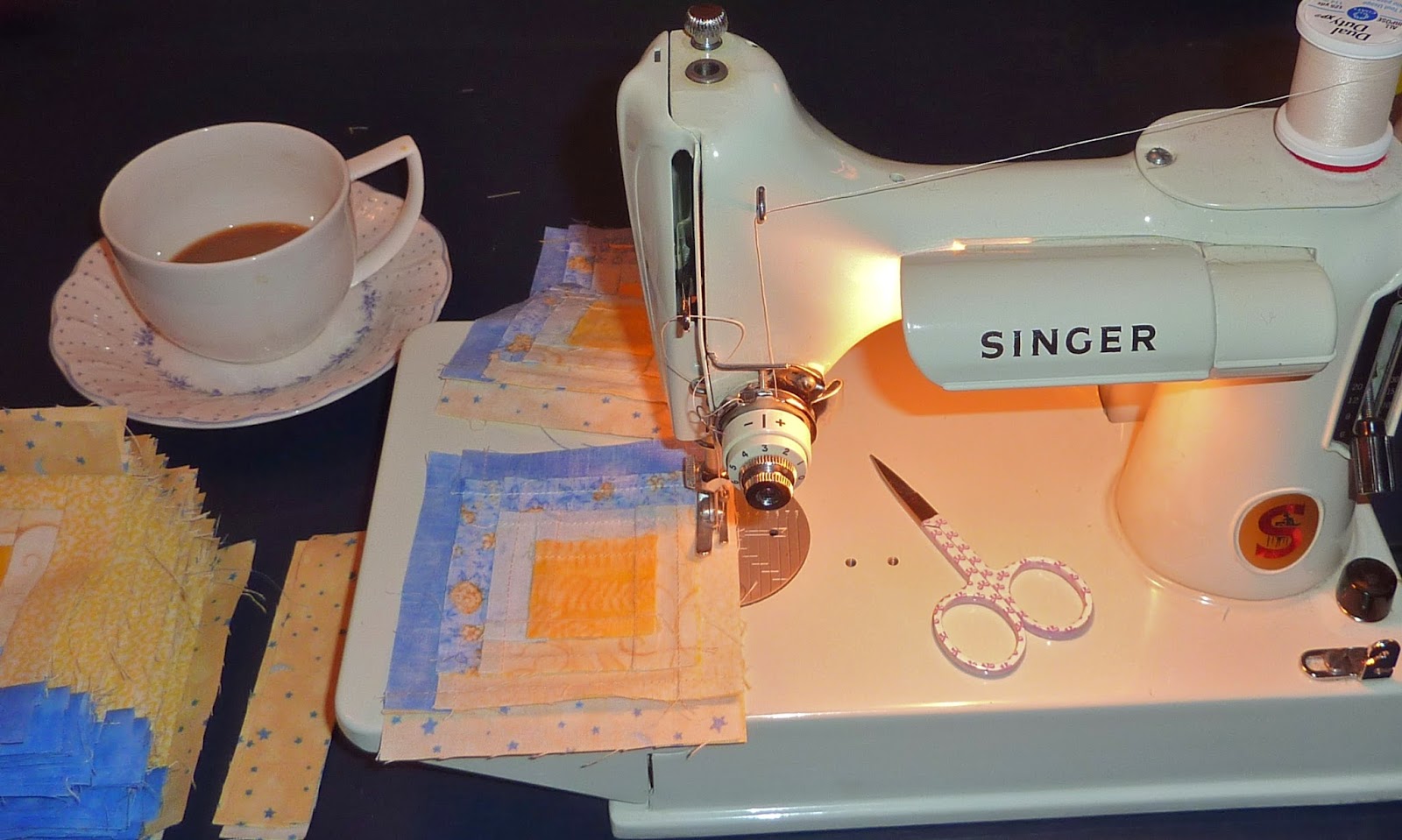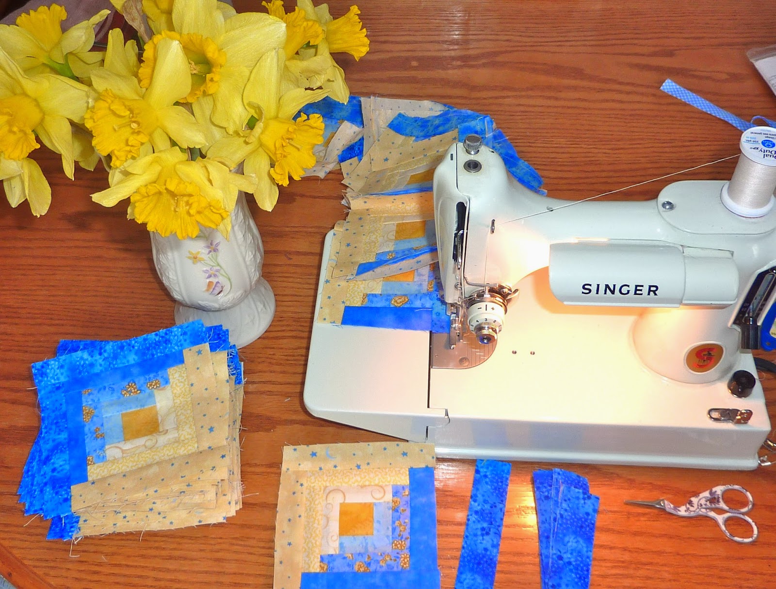 My mindless project is sewing these log cabin blocks on my Sweet Baby Jayne. Each block has twenty 1" logs to attach. It is relaxing and easy sewing.