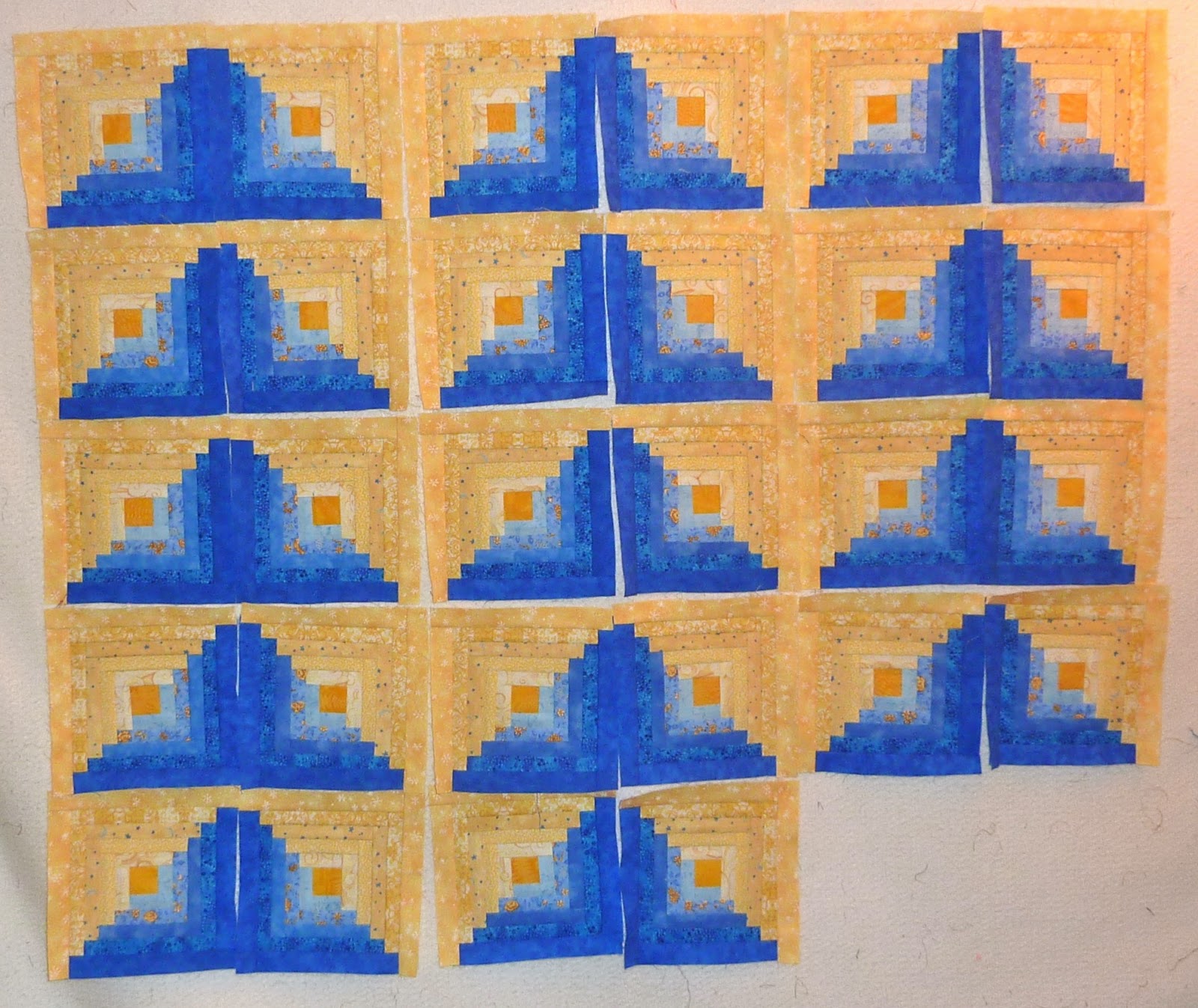 I have about 1/3 of the blocks finished, and about 1/3 very close to being finished, and the last 1/3 barely started.