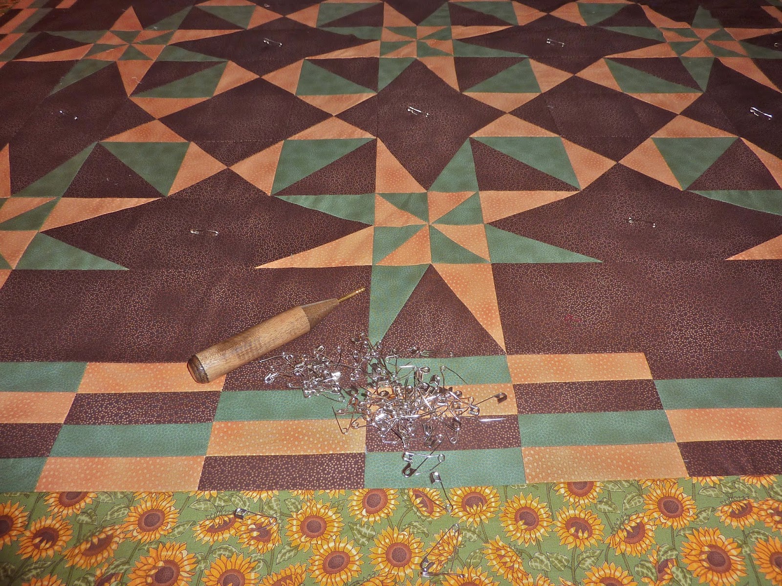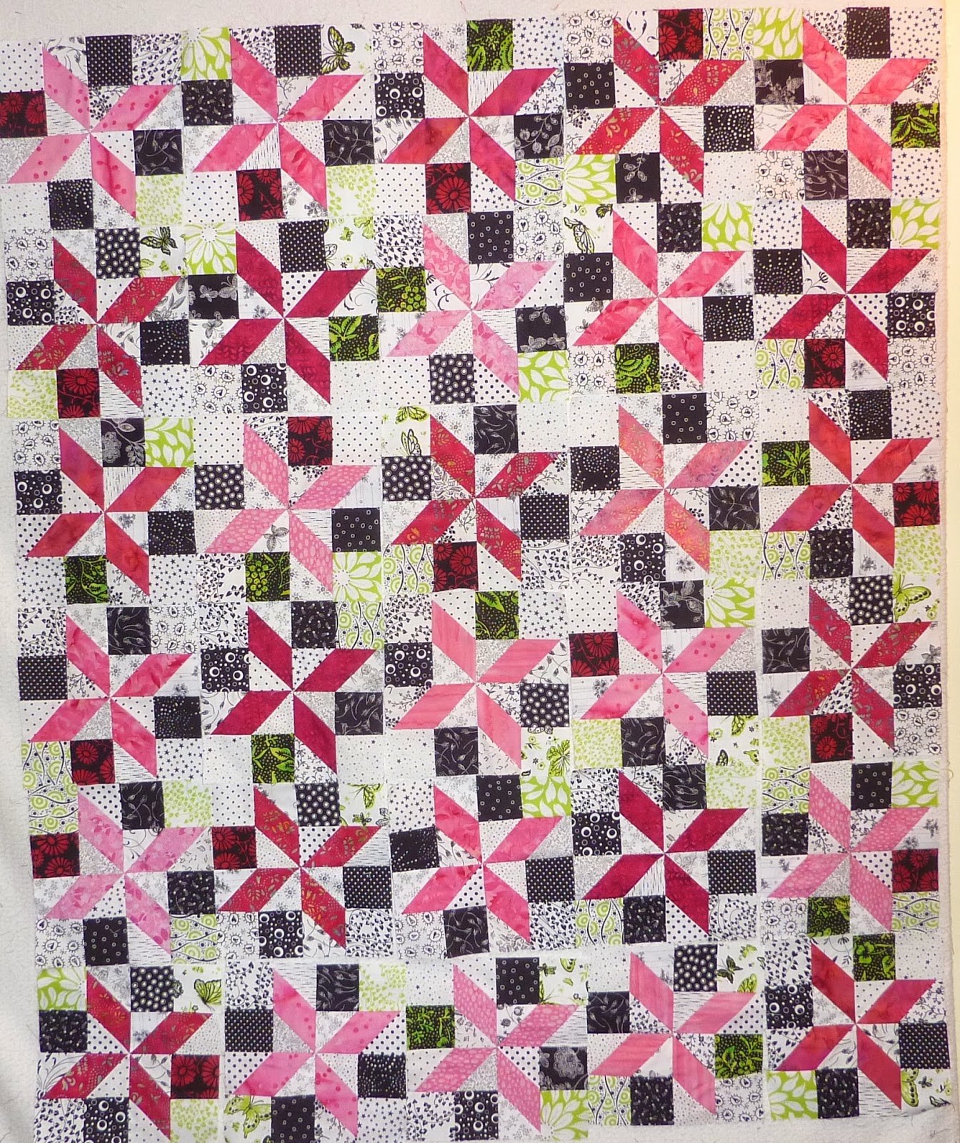 It is really big and I don't even have a photo of all of it, but here is the right half! This quilt is still a flimsy because I keep debating about whether or not I want to quilt it myself. It will likely be on next year's UFO list to finish.