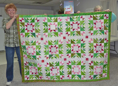 This was my first Bonnie mystery quilt. Her version was red, white, and blue so you can see I went totally out of the box on my first one! I love it and it's still one of my favorite quilts and is a cuddle quilt for TV watching.
