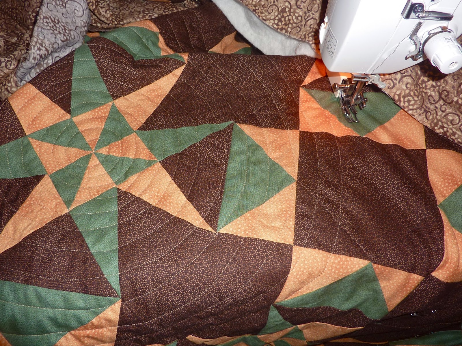 This is a large quilt which I machine quilted myself and was very happy with how it turned out. This quilt lives on my daughter's bed.