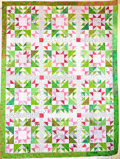I went totally rogue on this one and used only one fabric line called "3 Sisters Grace", and that is what I call this quilt.