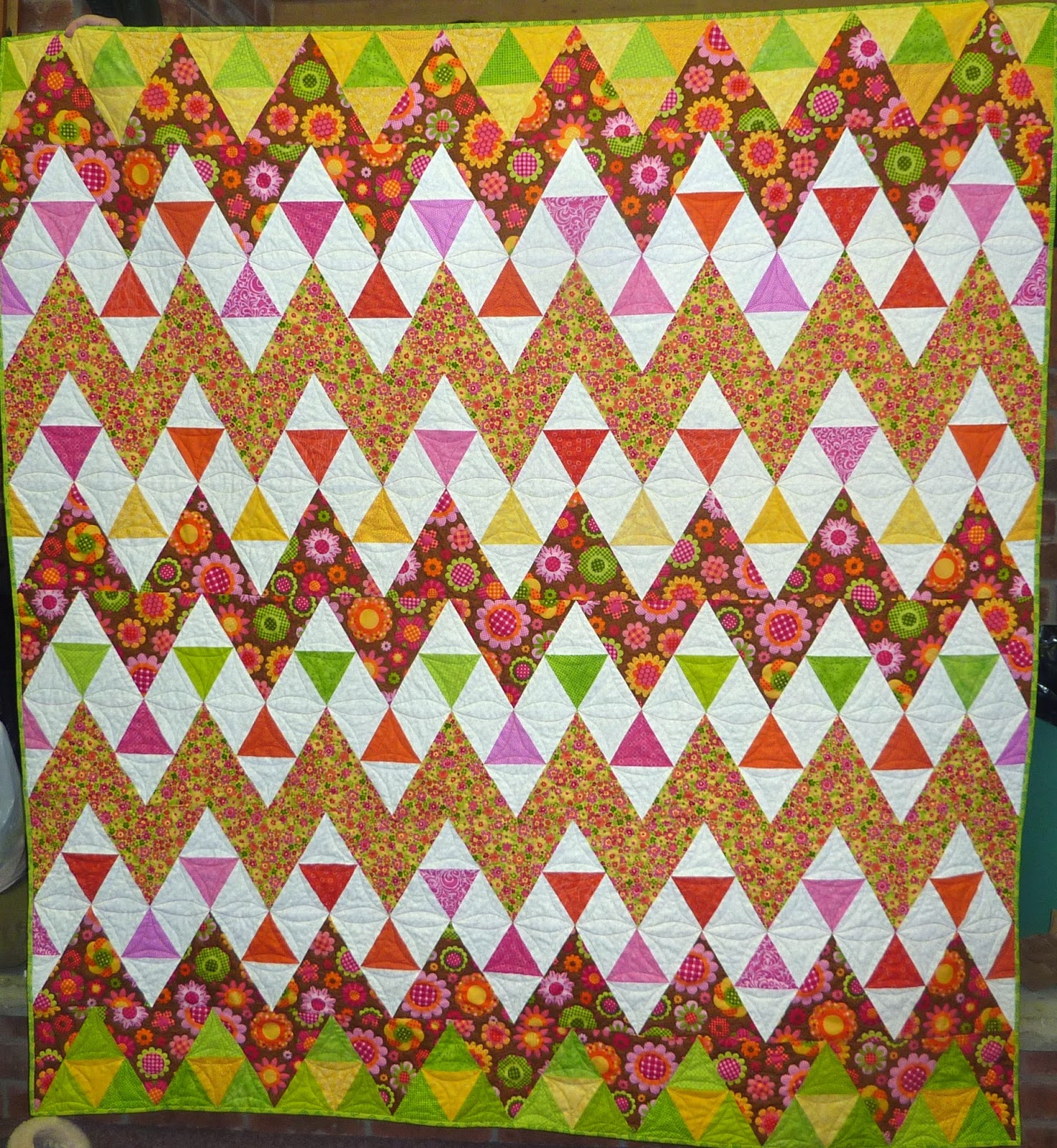 I am very pleased with how this quilt turned out and really like this photo of the quilt dancing on the clothesline. It really is happy quilt full of energy!