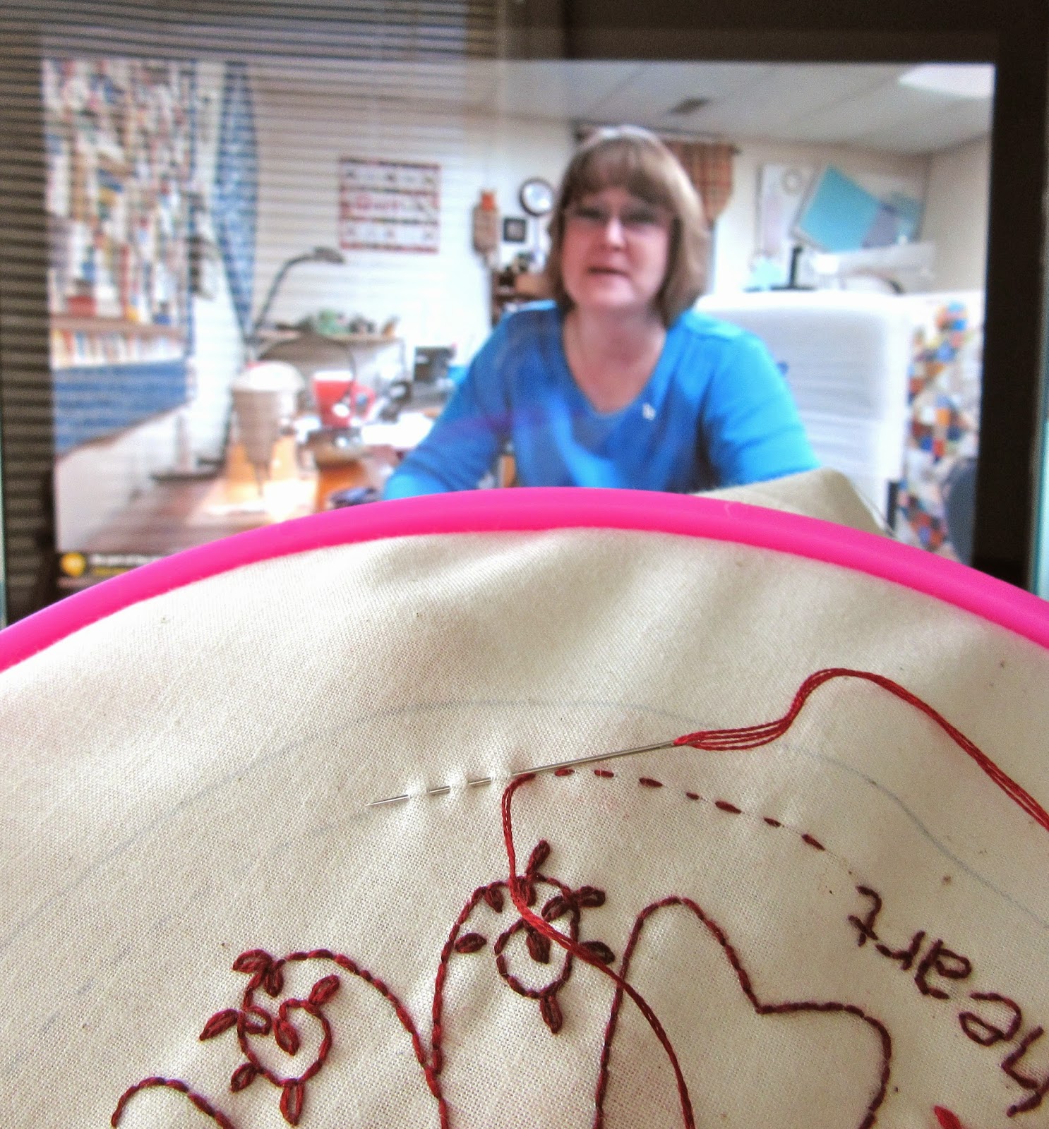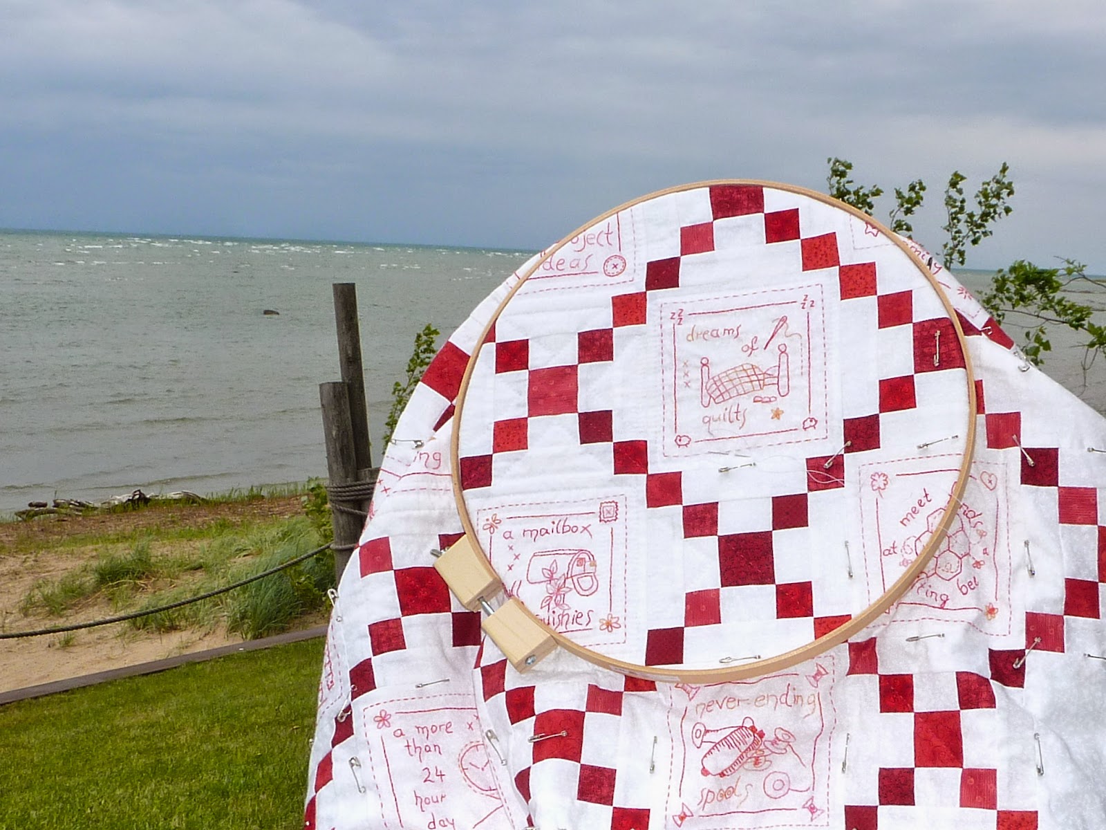 It was a very windy day when I took the quilt outside for the photo shoot. I had to wait patiently until it hung relatively straight to get some photos. I like this one with the sun shining through.