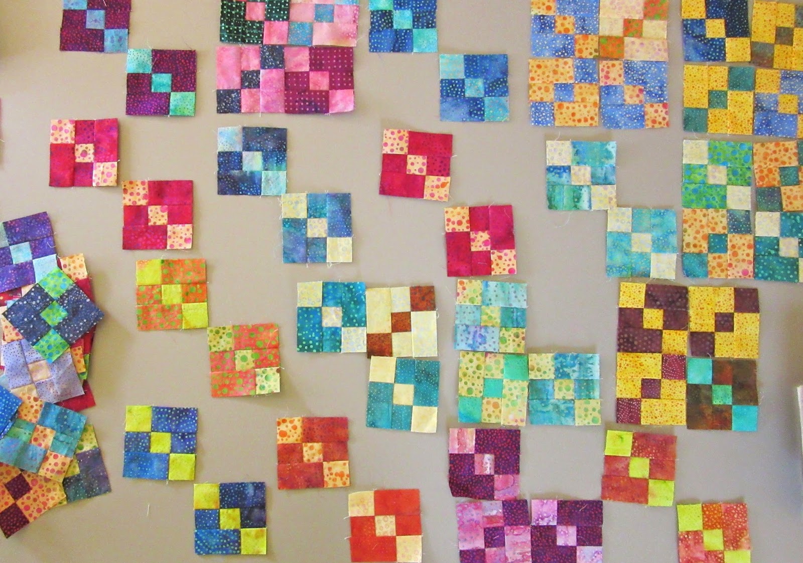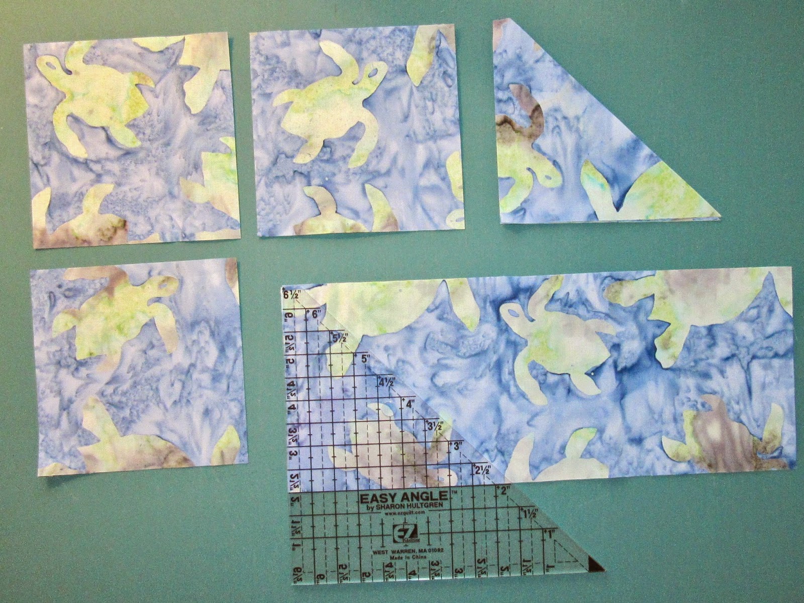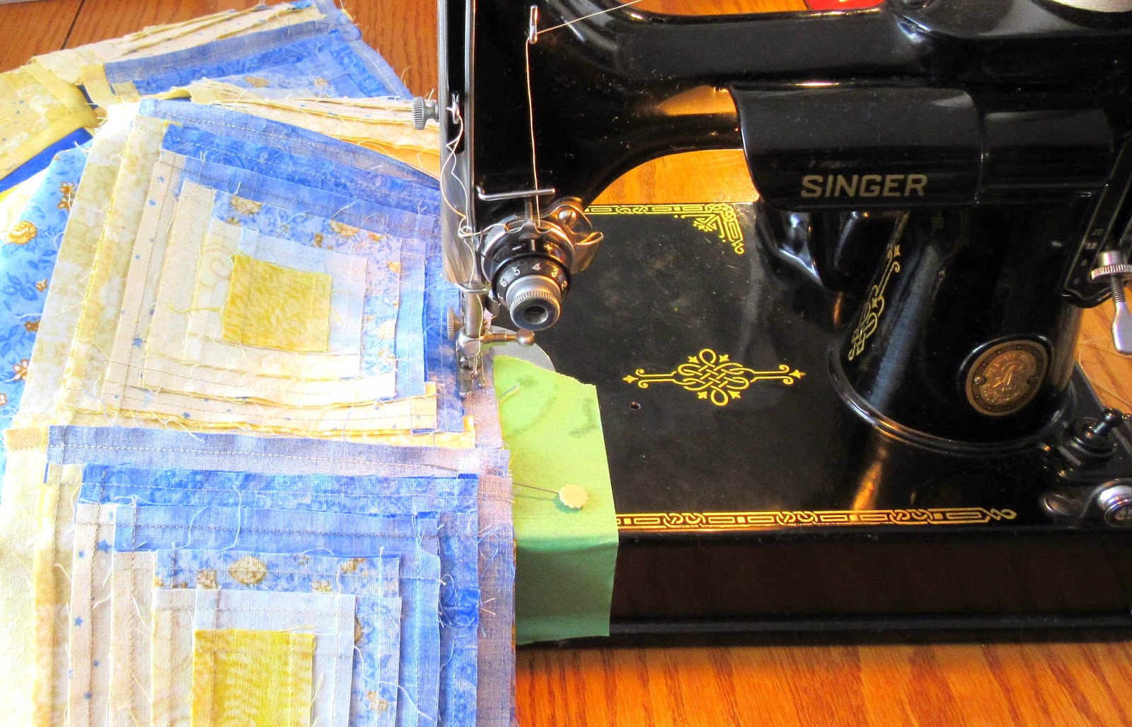 This darn UFO is almost a quilt top. It was a good effort but is taking so long in the designing stage. I added a 1.5" blue border, and then put the extra block parts on point. I didn't have enough blocks to complete the border it wanted, and I am still scrounging through the scraps trying to stretch them to make enough blocks.