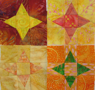 Just a wee bit of orange sewing has been going on here this week. A few Alamo stars were made as leader-ender blocks, and a couple of pumpkin seeds were hand stitched. I am using up some small pieces of orange left over from my first scrap squad quiltTo see what the rainbow scrappers are accomplishing, hop over to the Saturday link up. Angela has a draw going on to win a bundle of Vicki's yummy hand dyed fabric. (I won a package of her fabric last year and loved it - you can see the quilt I made here)