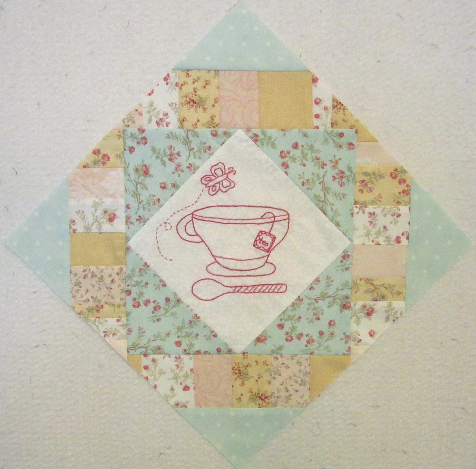 Today is the release of the 5th block for the Cozy Afternoon quilt. It has another adorable embroidery block that you can chose to make for the centre. If you are not into embroidery, you can make a pieced block instead. Hop over to Jacquelynne's to see more ideas and to sign up for the free patterns if you haven't already.