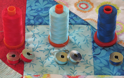 I picked out these 3 thread thread colours for the machine quilting.