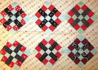 I was able to get some sewing time and got caught up with Lori's Quiltalong called Country Roads. These cute little 5" blocks are the end result of part #2.