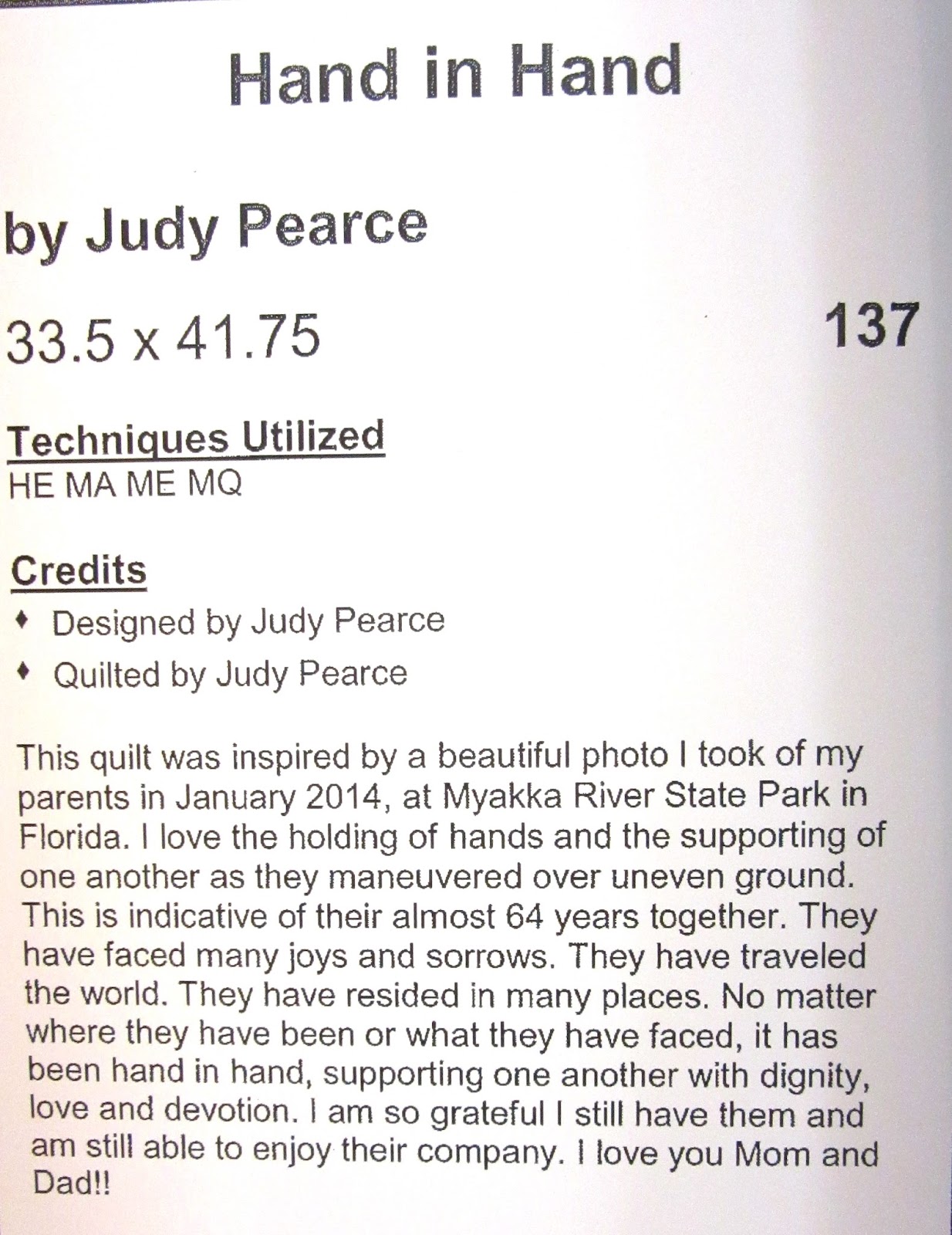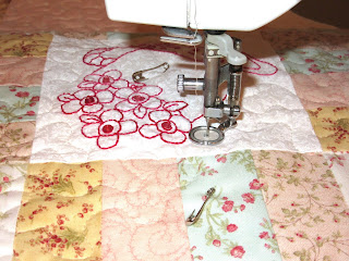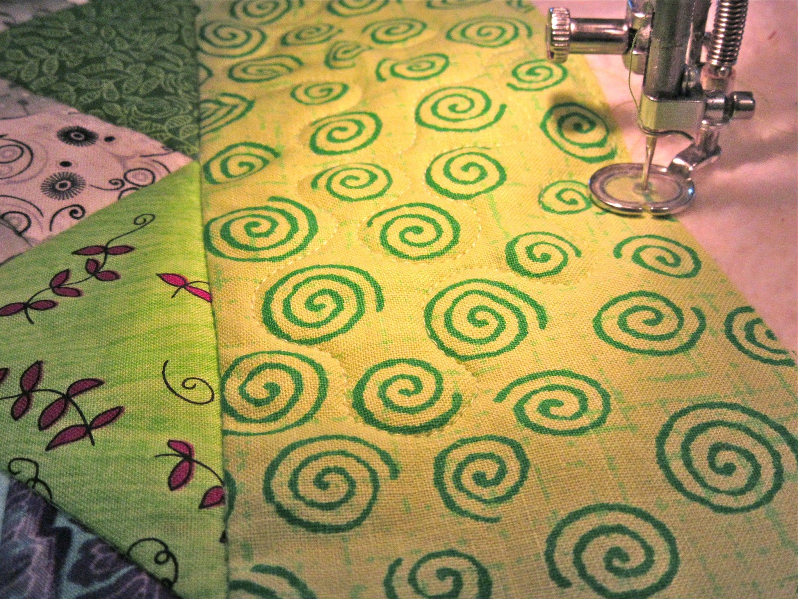 Then I finished a little hand quilted miniature block called Times Nine. That added 48" to the total.