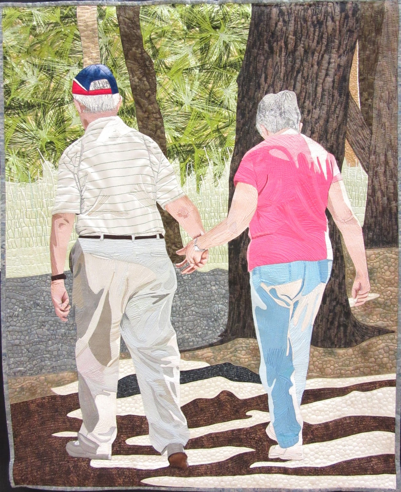 I finished Cozy Afternoon which was 136" of binding. It was a little harder on my hands because of the flange in the binding on the front of the quilt. I should have cut the binding strips a bit wider to accommodate the flange, but I forgot, and had to really pull the binding to cover the stitching line on the back.
