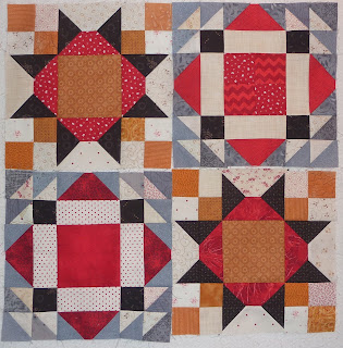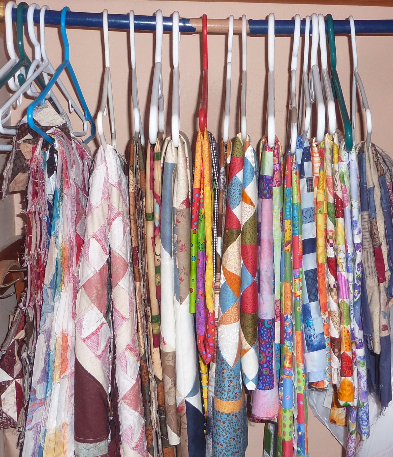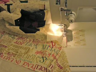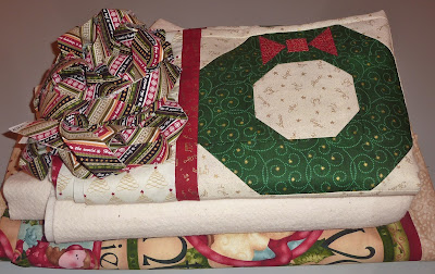 My January UFO is finally finished on the very last day of the month! Here is my version of Deckade the Halls pinned to the design wall. It measures 56" x 68" which is wider than my design wall, so the edges of the quilt look a little bit wonkier than they really are.