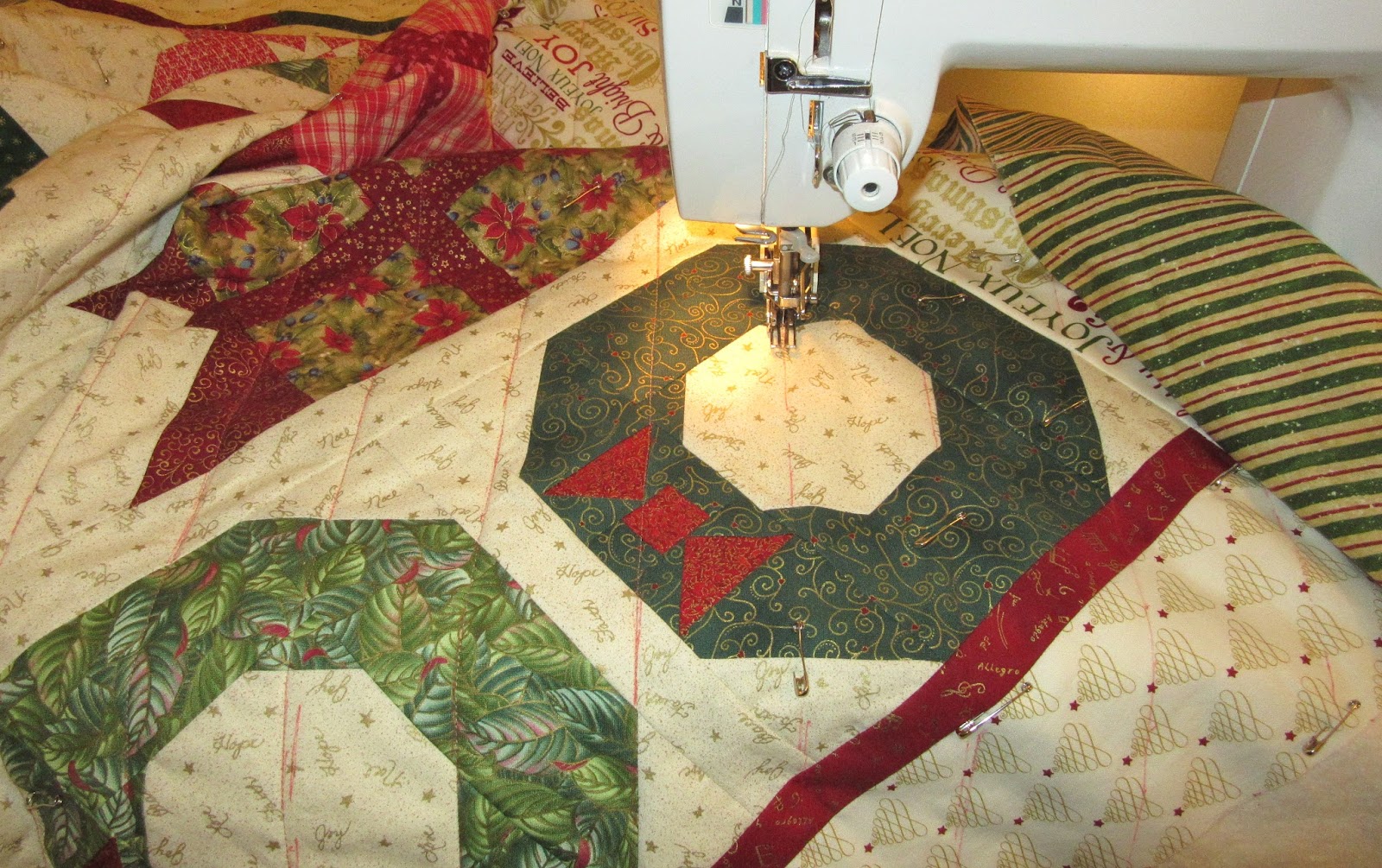 This was a free pattern from the Fat Quarter Shop to celebrate their 10 years in business in 2013. It was such a fun quilt to piece with the Christmas themed blocks of ornaments, stockings, presents, trees, gingerbread people, mugs, stars and wreaths.