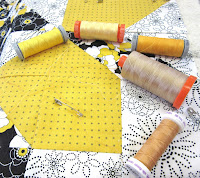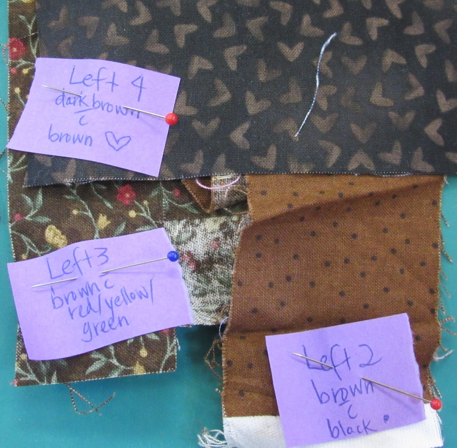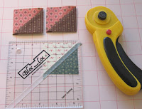 I have been collecting the fabrics for this quilt over the past year, always carrying the fabric swatches with me just in case I found myself in a fabric store. I am using the same colours as the quilt in the pattern. I decided I had accumulated enough fabric to start making some blocks.