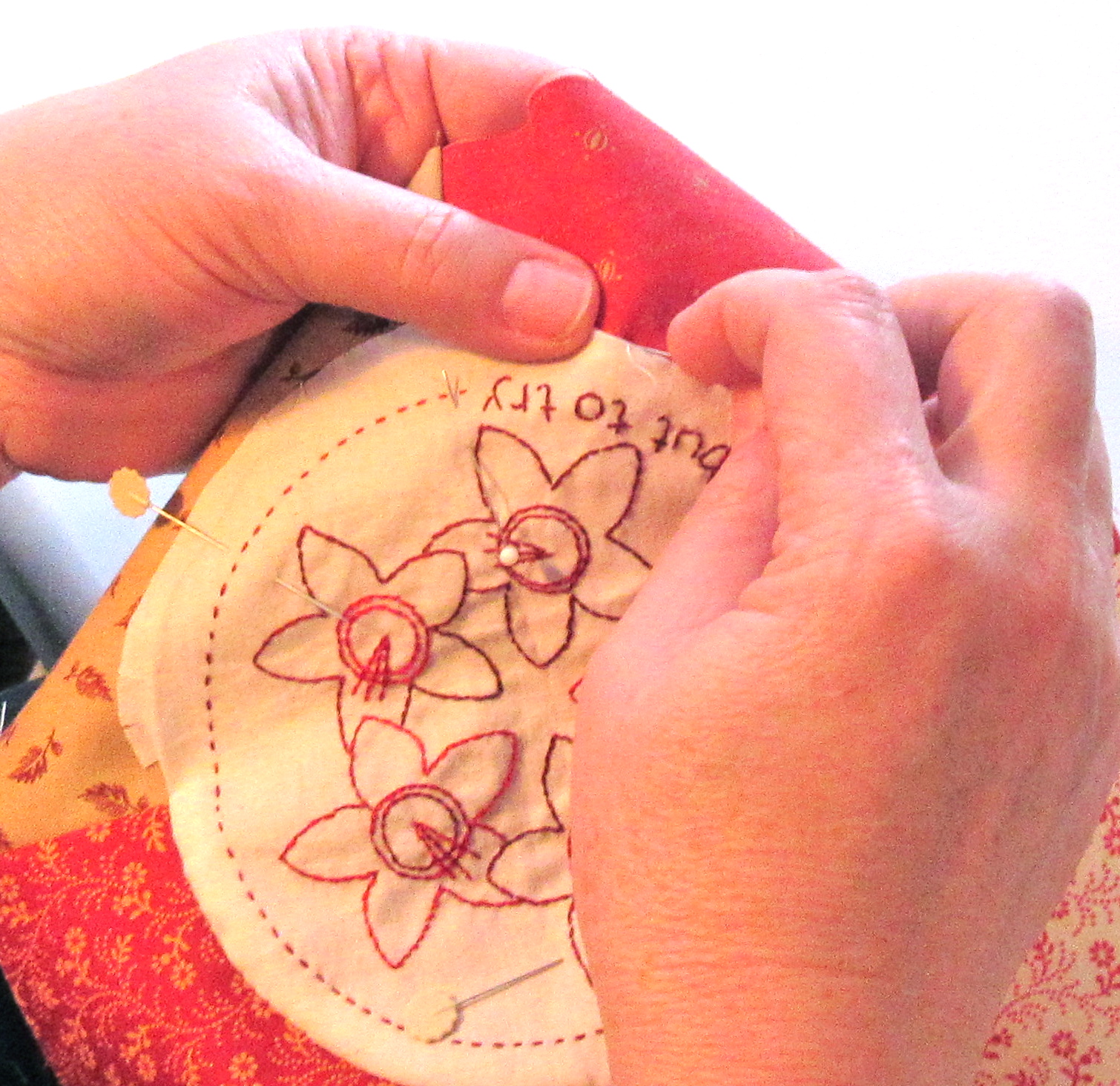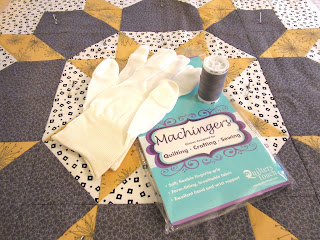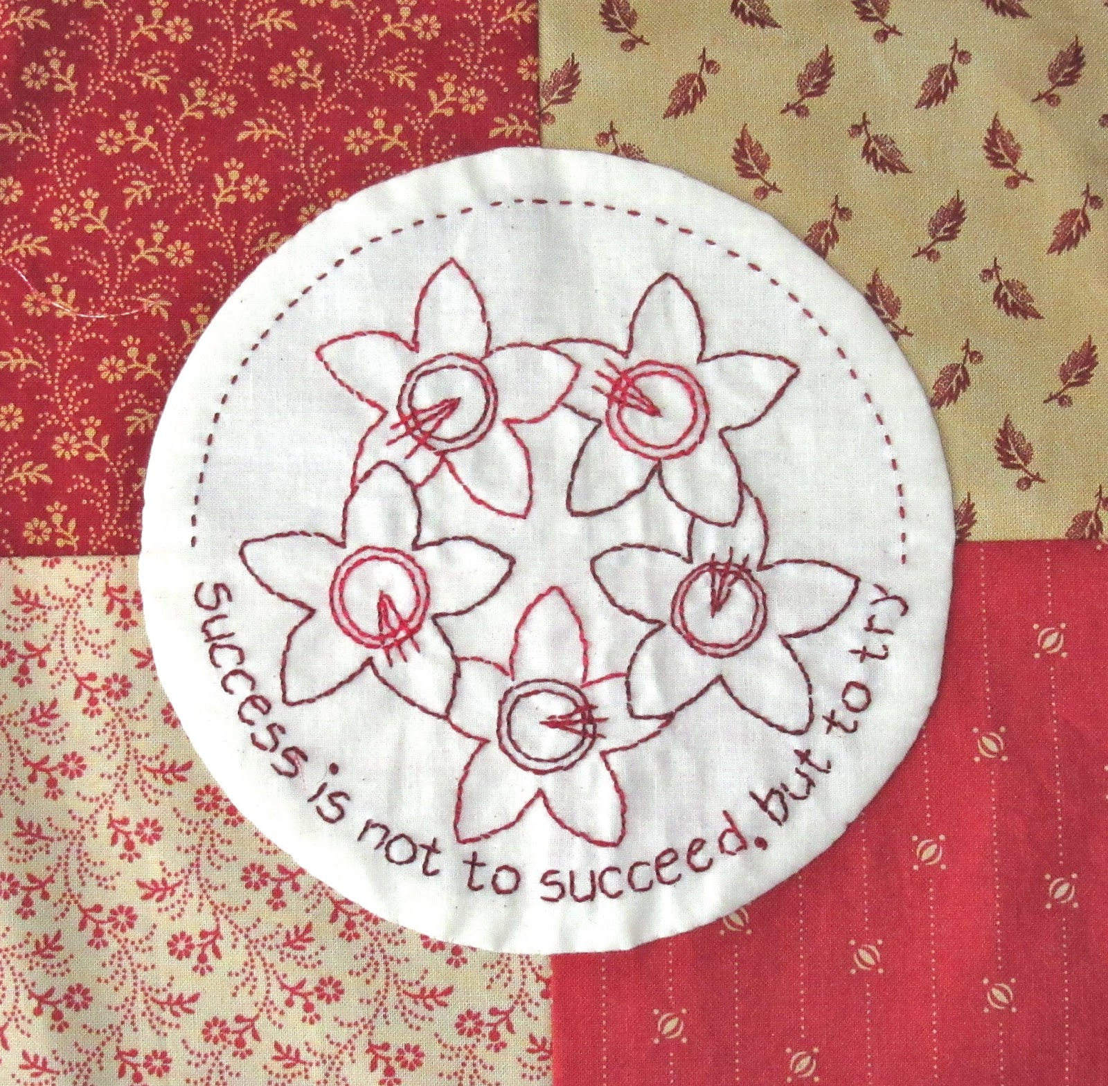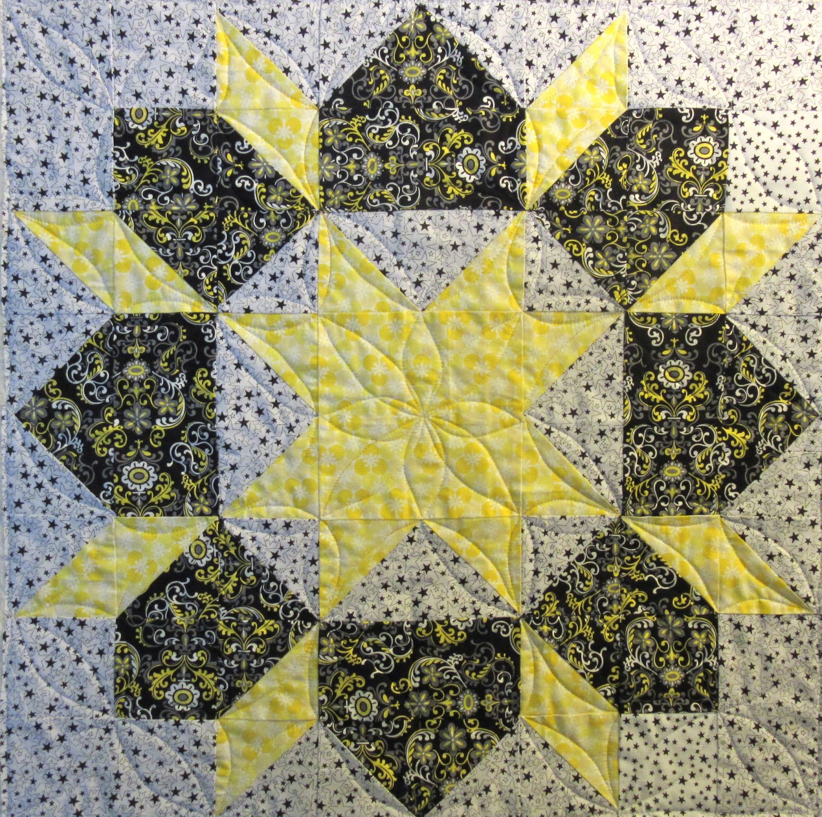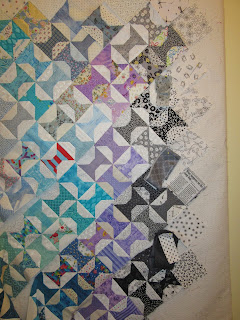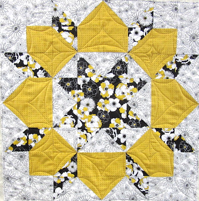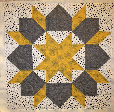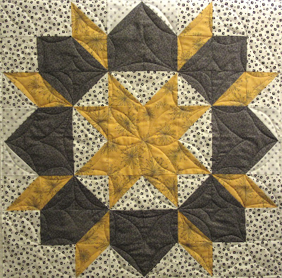 Here is s close up of block #4. These prints are so busy you can't see any of the quilting design.