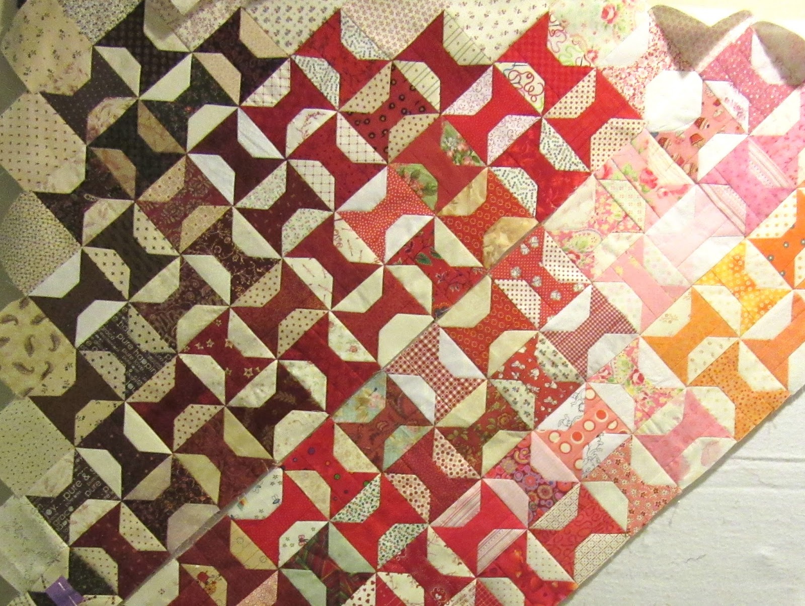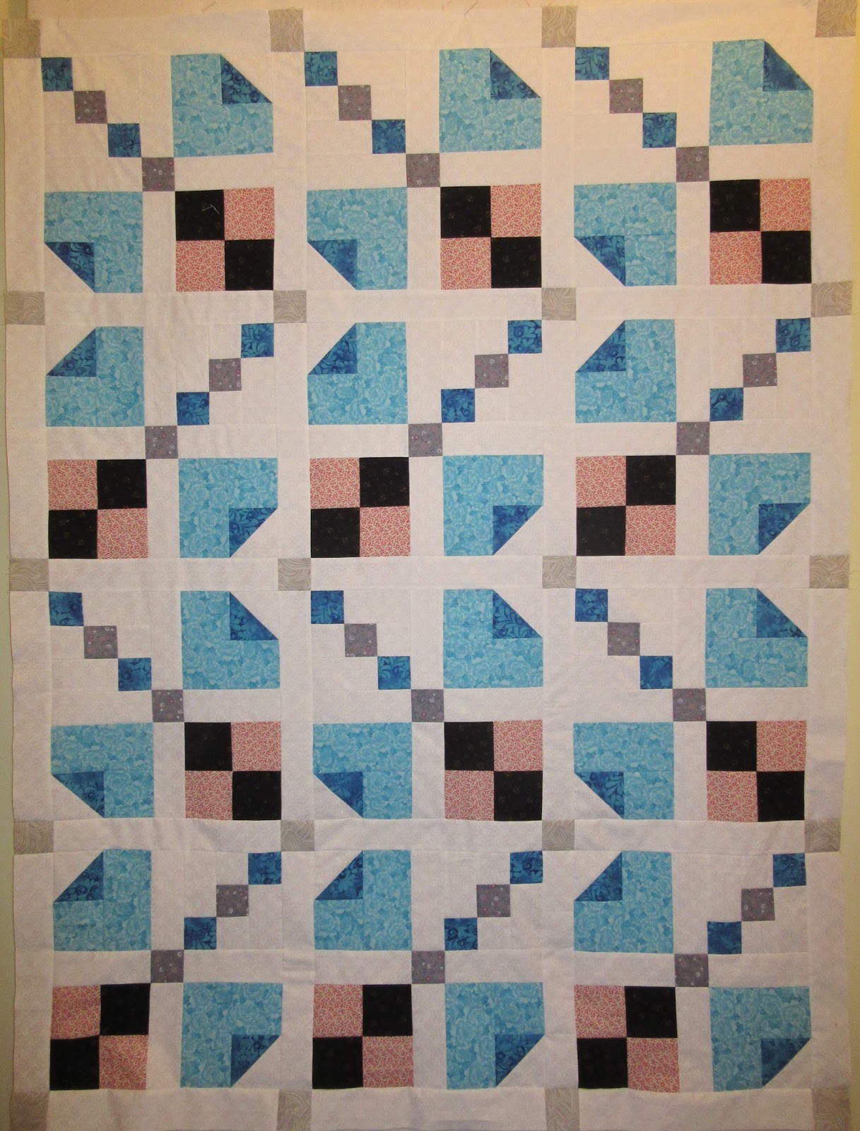 The layout decision for the Quiltbug mystery Peekaboo has been made and the blocks are sewn together. I always enjoy sewing a quilt that has a variety of possible layouts. And this was a fun mystery to sew with well written instructions.