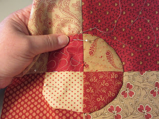 I finished the applique on the last alternate block. I used silk thread which makes lovely stitches that sink into the fabric, but it also frays easily and the needle constantly becomes unthreaded. It's not my favourite thread to use.