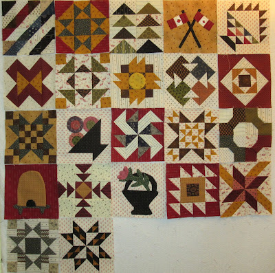 Here are the first 20 blocks on the design wall. I'm still missing the flag block from week #16.