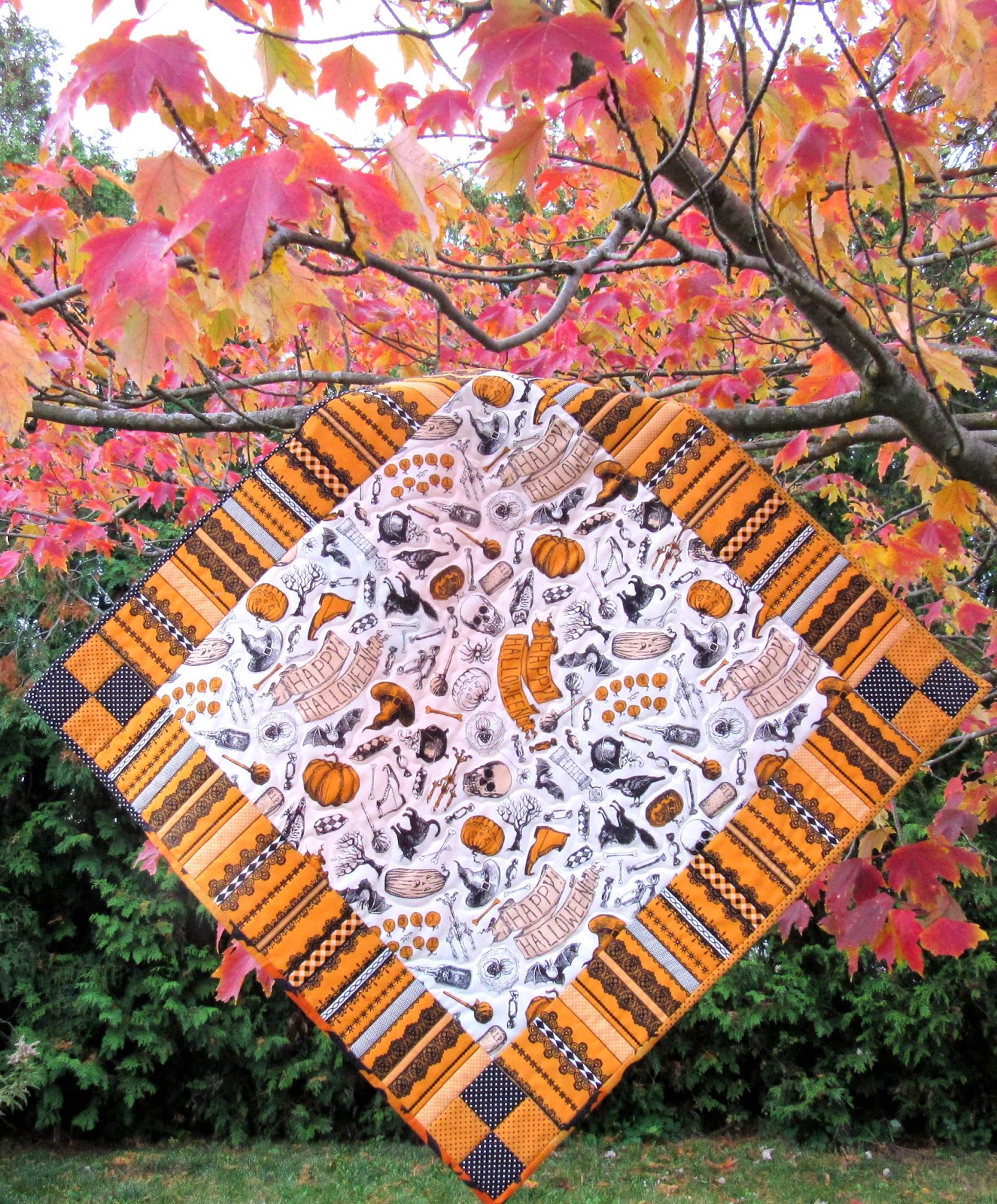 In spite of working really hard to finish before the end of the month, my October UFO did not get finished. I knew that it was a lofty goal to piece a backing, pin baste the quilt sandwich, machine quilt the whole thing on my domestic sewing machine, and bind the quilt within one month. But sometimes you have to aim high, so I did!