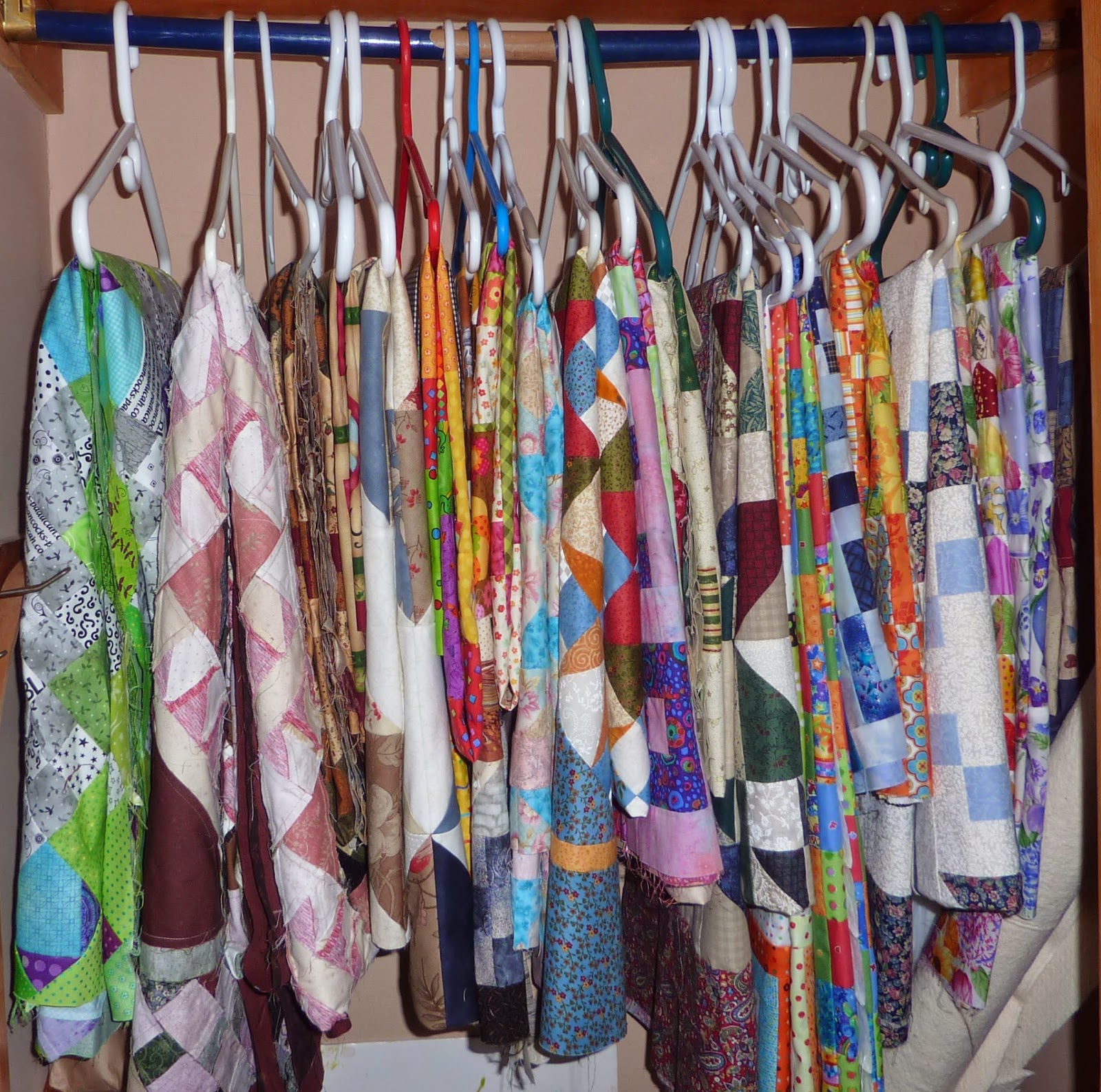 Hmmm... lots of treasures in there that would like to become finished quilts! Some of the hangers have the quilt top and the fabric for part, or all of, the backing....which is shockingly organized (for me)!! It was hard to pick only 12 projects to concentrate on, but it had to be done, and some quilt tops that didn't make the list are crying in the closet now. Not really... I made up that last part to see if you are still reading! LOL