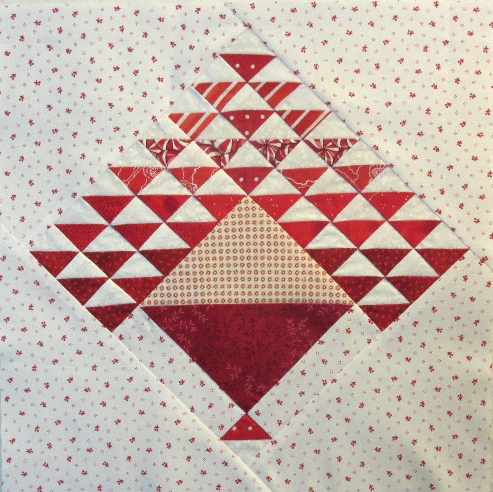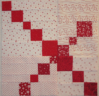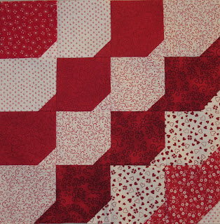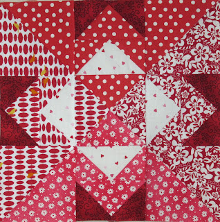 Because I had been sewing with a lot of blue in January, I needed a break from blue, so went with red and white. I can say that it is the most difficult block I have ever sewn, although I'm still not sure why it took me hours to make!