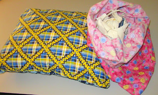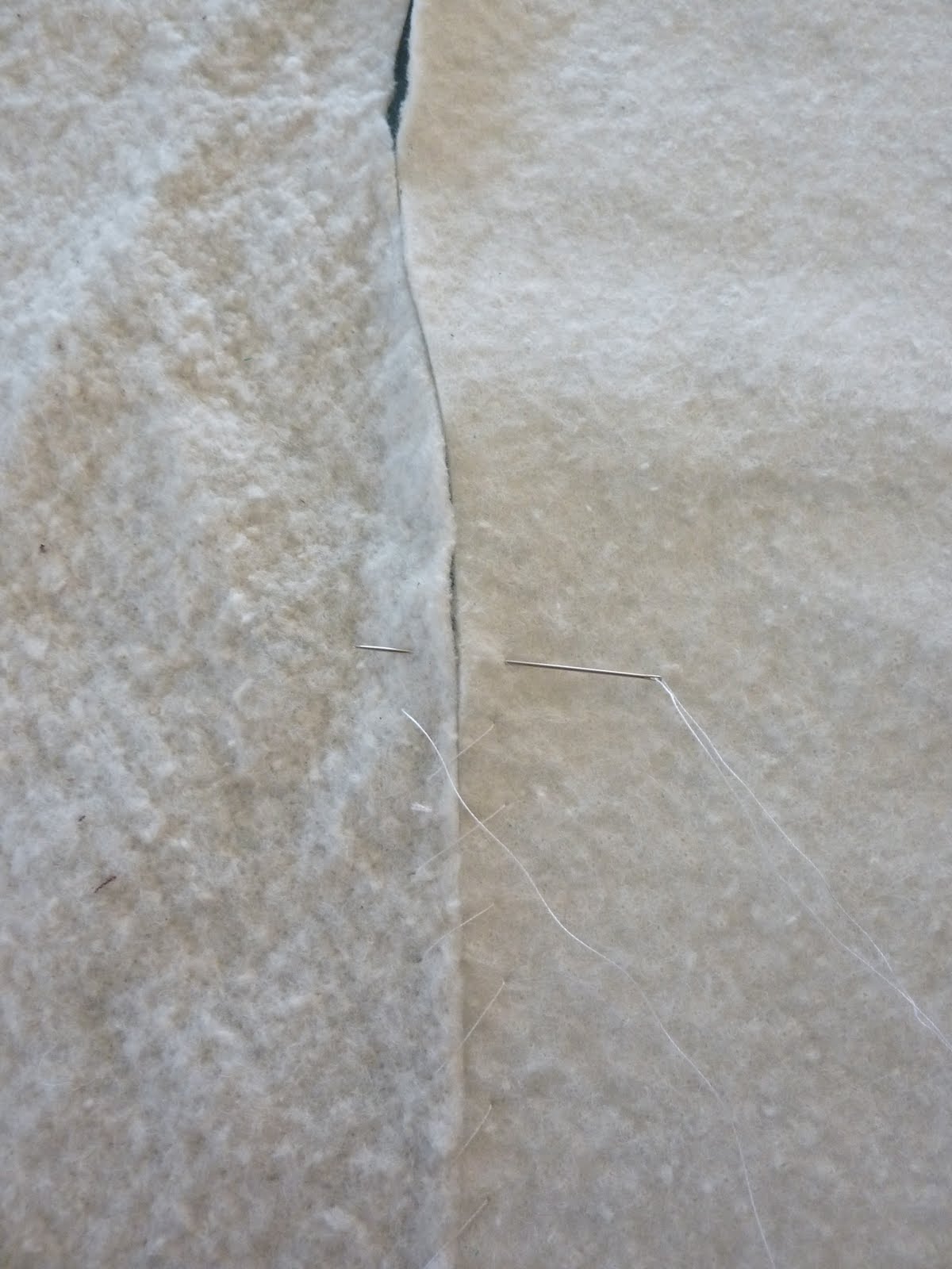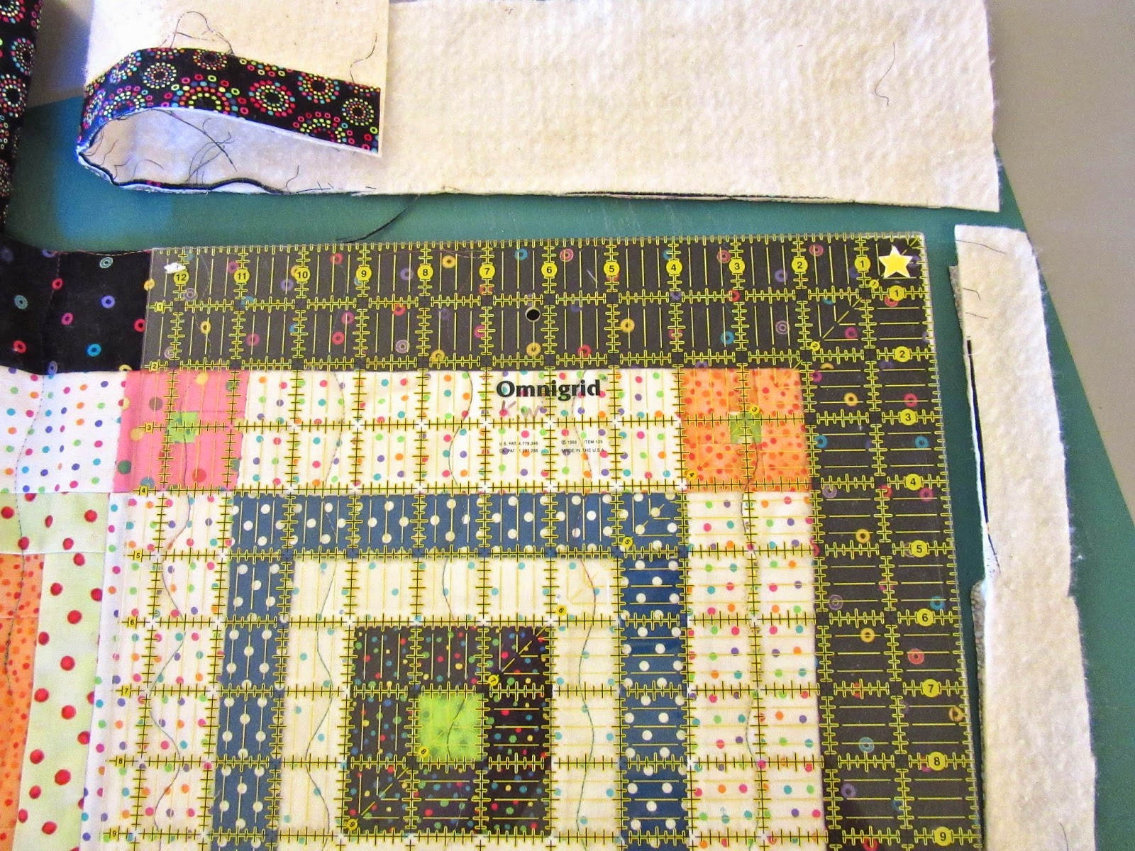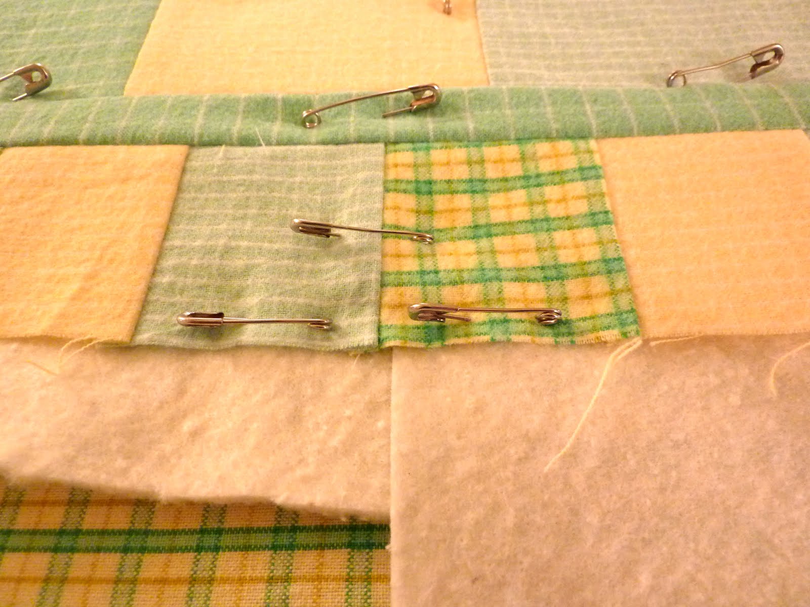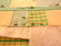 I had a spool of yellow Aurofil thread for the quilting, but only had bits and pieces of batting around. So I just butted the batting scraps, overlapping them slightly in some places, and pin basted it. I have used batting scraps before but painstakingly hand sewed them together with zigzag stitches. It's just a baby quilt that will be used and laundered frequently, so it doesn't have to be perfect. Do you think this will be a problem?