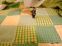 I am quilting it very simply, stitching with the walking foot 1/4" both sides of the seam lines. If the golf tournament is boring, I'll get a lot done on this old UFO!