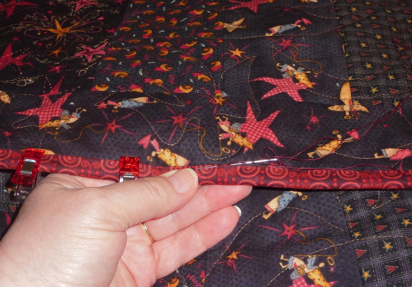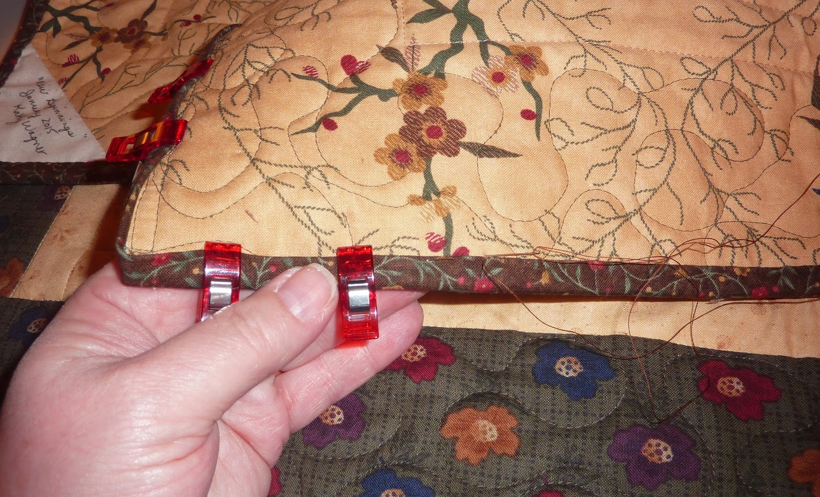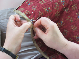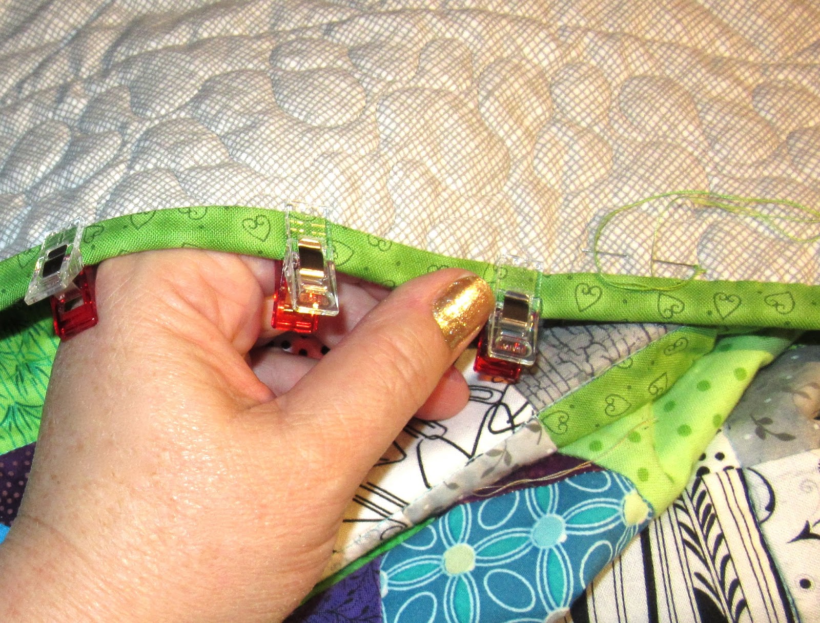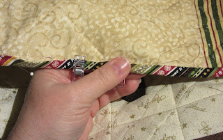 I also put in some binding stitches at my weekly date with my parents. It is our tradition to watch "Dancing With the Stars" together and I like to have a hand stitching project to work on during the commercials.