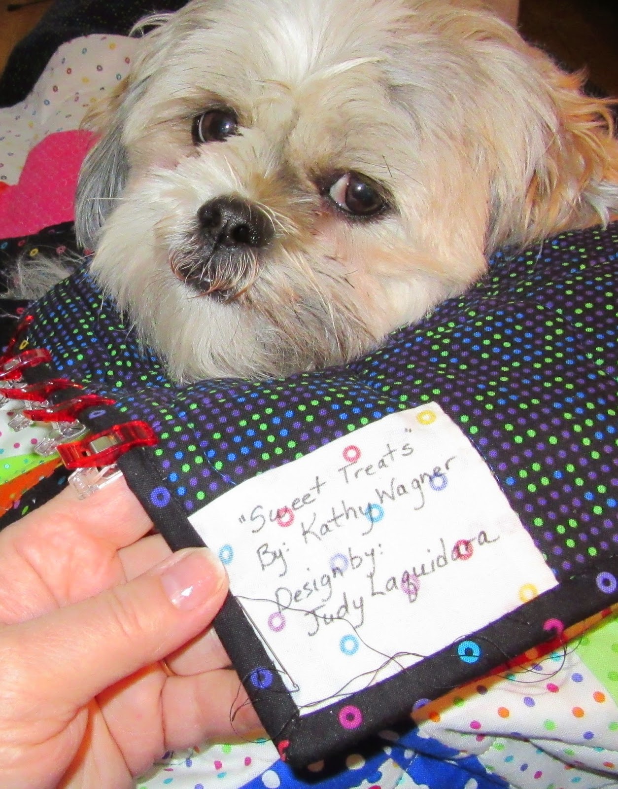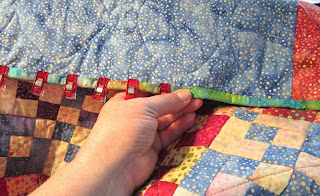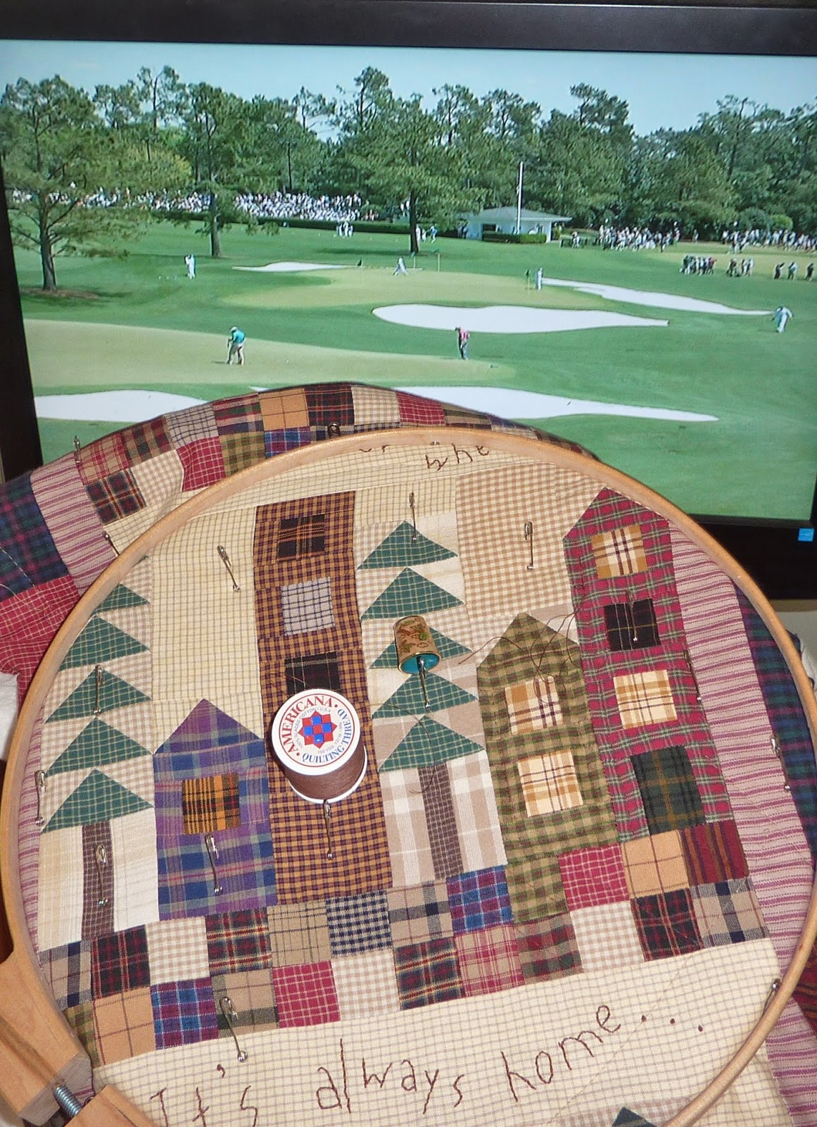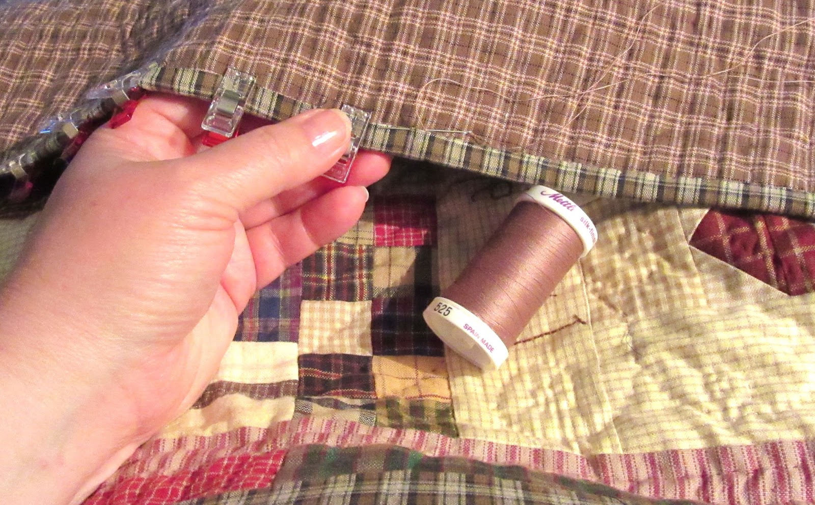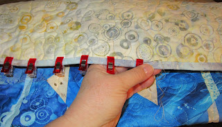 I also put in some binding stitches at my weekly date with my parents. It is our tradition to watch "Dancing With the Stars" together and I like to have a hand stitching project to work on during the commercials.