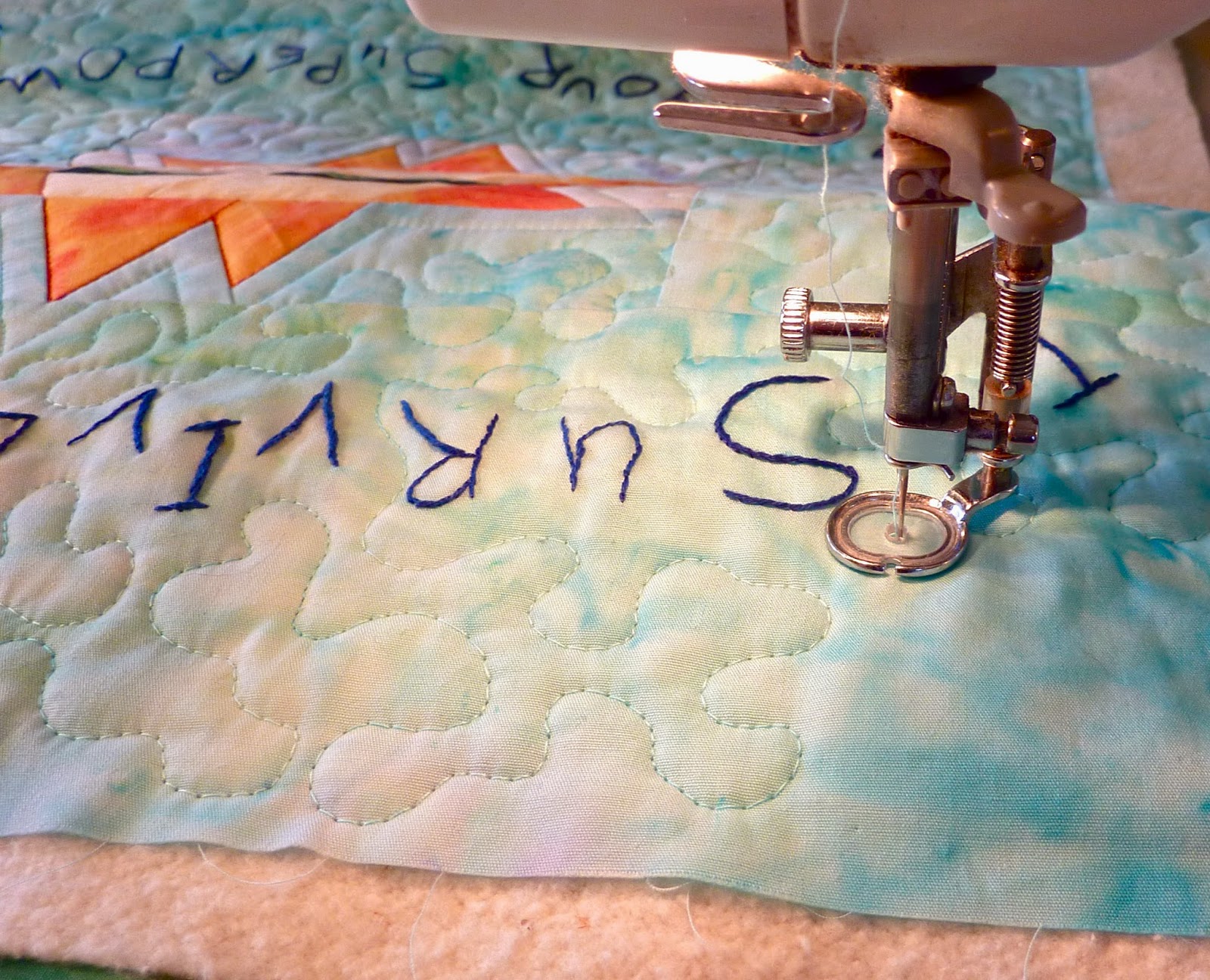 I hand quilted around the bowls and in each border square (really, that was my favorite part).