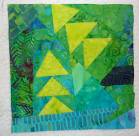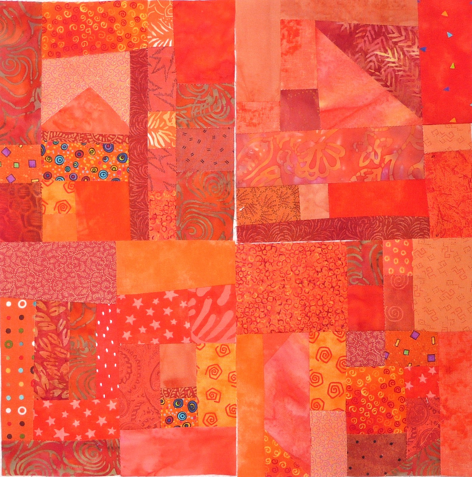 However, I really wanted to have the word 'vortex' in the quilt, so I pieced the letters, surrounded them with scraps, cut the quilt top in half and inserted the vortex strip.